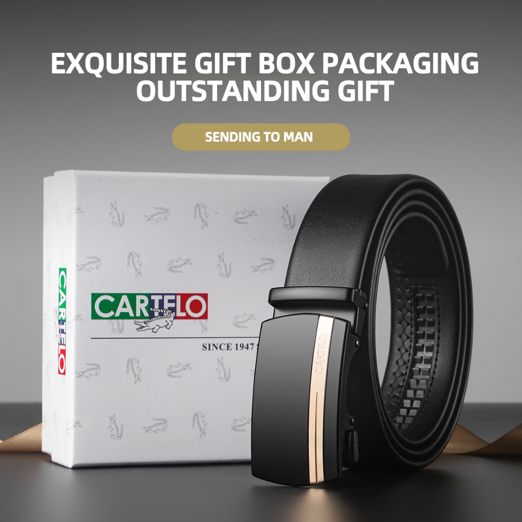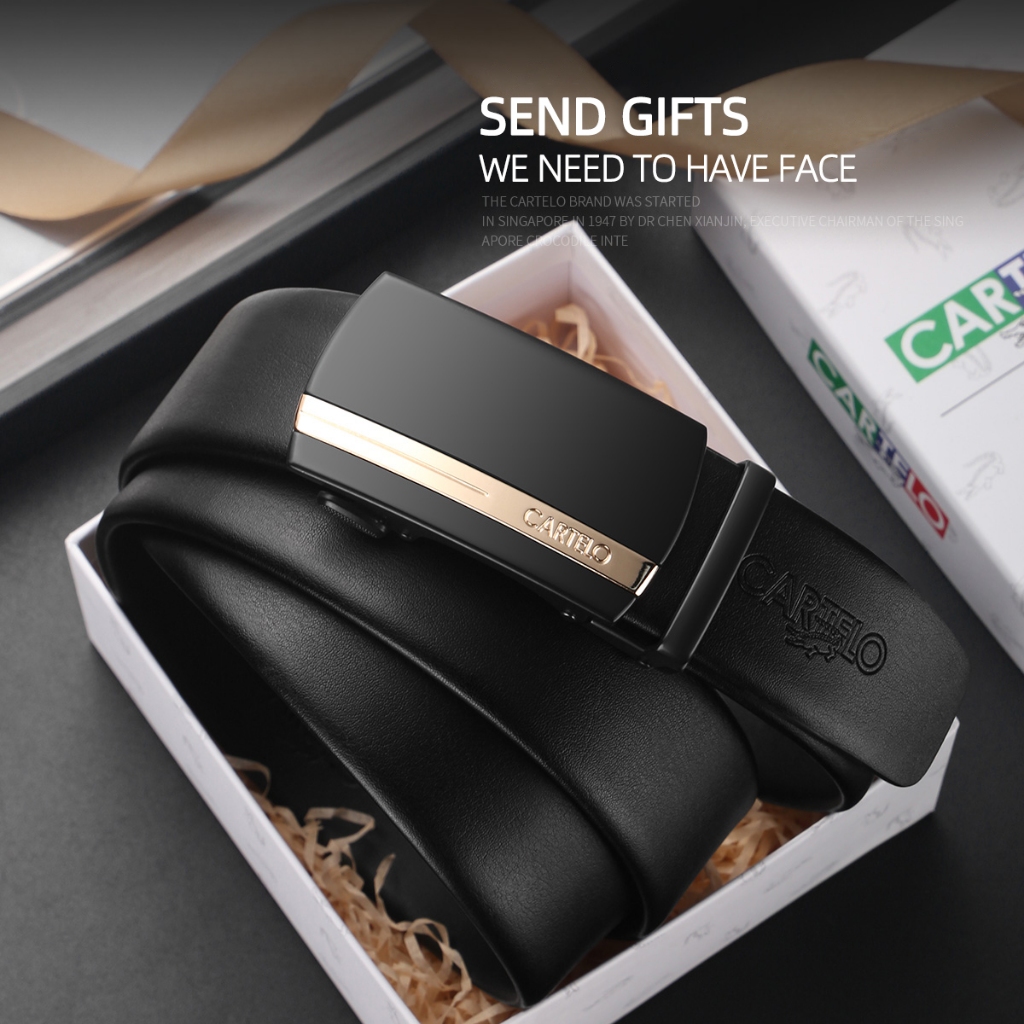 Black Hammer Men Genuine Leather Auto Lock Buckle Belt