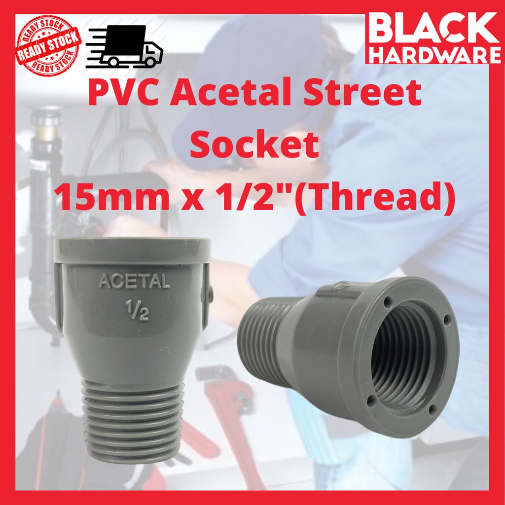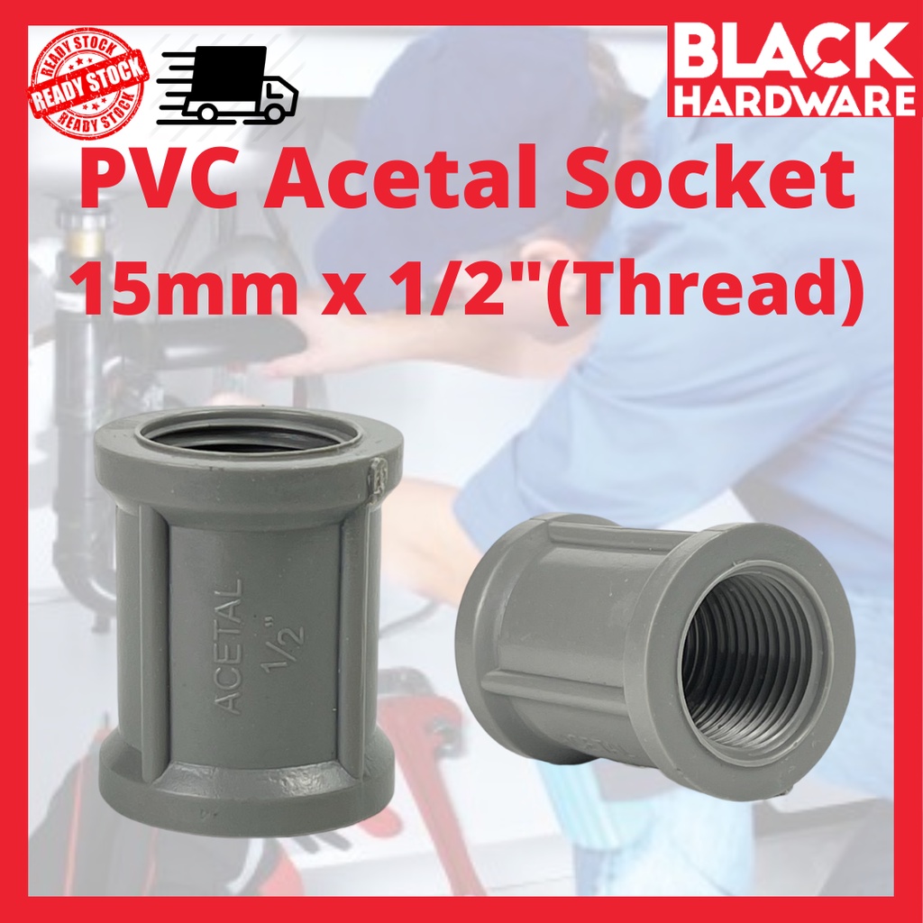 Black Hardware PVC Acetal 15mm Socket Elbow Pipe Tank Connector Hose Fitting Side Thread Penyambung Paip Air White Tape