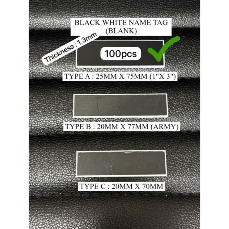Black White Name Tag - Blank (Plate Only) (With white border)(100pcs)Thickness 1.3mm