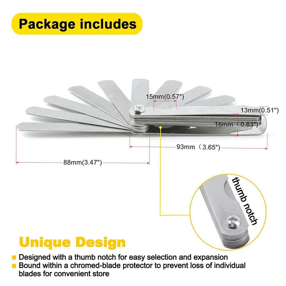 Blades Feeler Gauge Stainless Steel Feeler Gauge Metric Thickness Gage Set Tappet Valve Feeler Metric Gauge Metric Thickness Gage Set