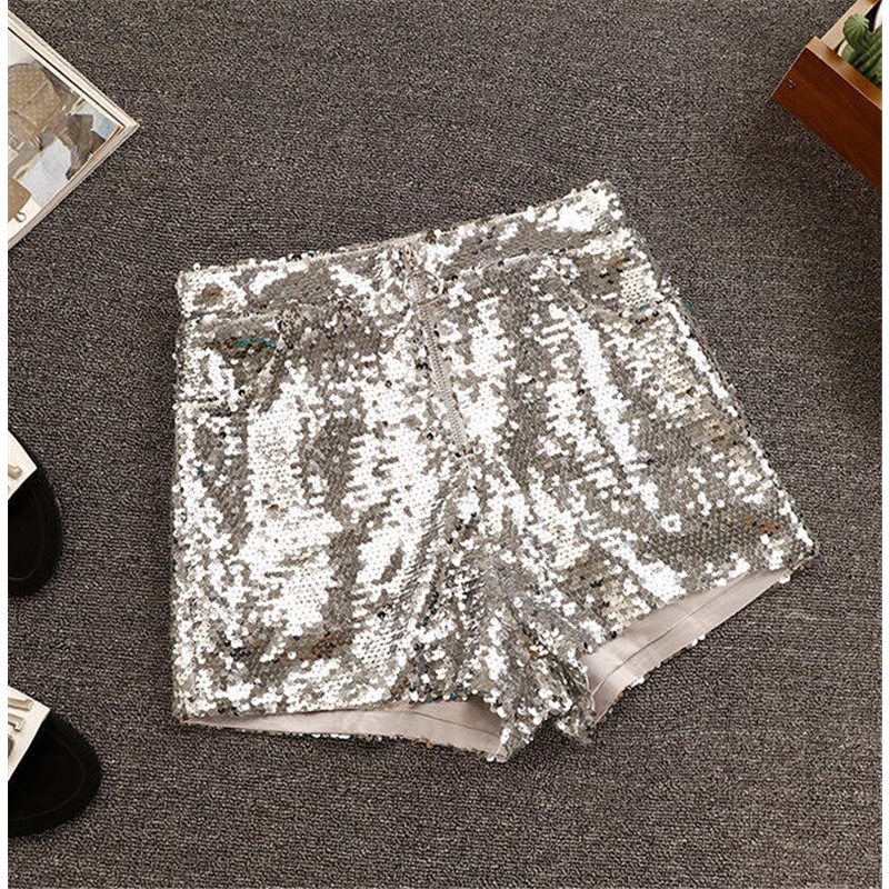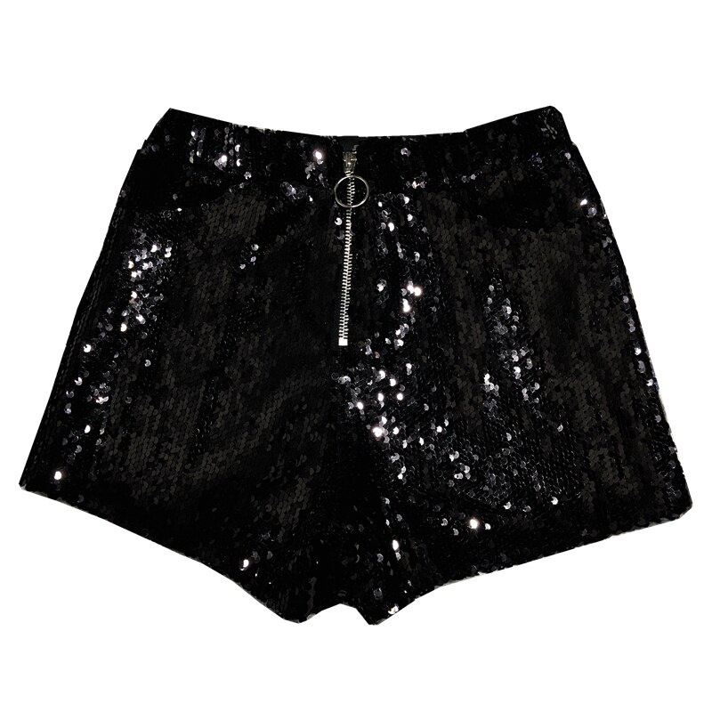 Bling Sexy Women Sequin Shorts High Waist O-Ring Zip Bodycon Shorts Feminino Skinny Party Club Festival Raves Pole Dance Shorts