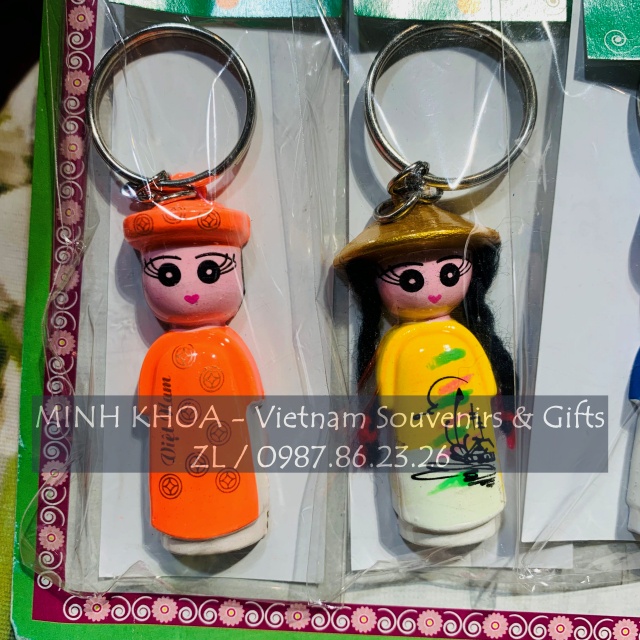 Blister of 10 Ao Dai Keychains Scarf Closed Dolls Conical Gifts - Vietnamese Souvenirs - Vietnam Traditional Keychain Souvenir