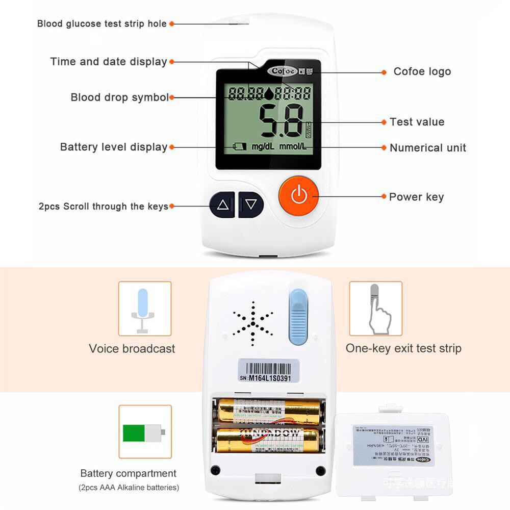Blood Glucose Monitor with 10pcs Test Strips 10pcs Needles Free 10pcs Alcohol Swabs Glucometer Sugar Tester Kit Diabetes