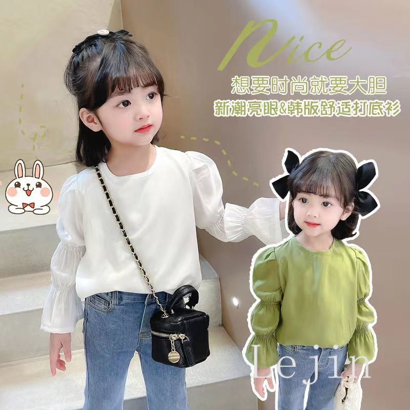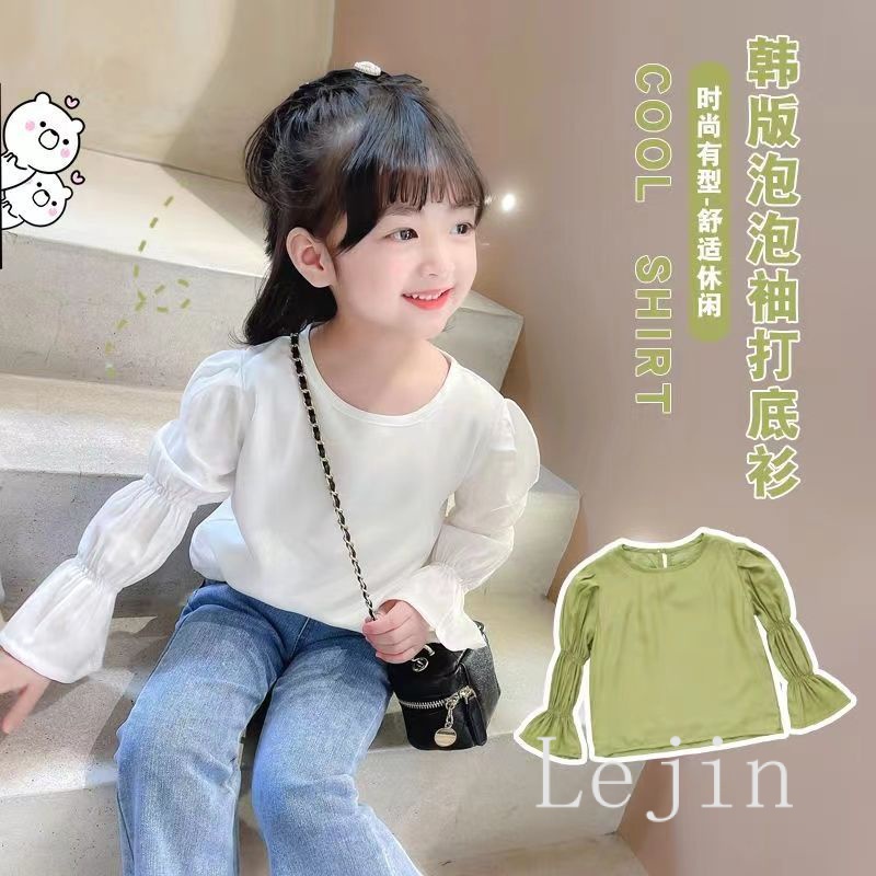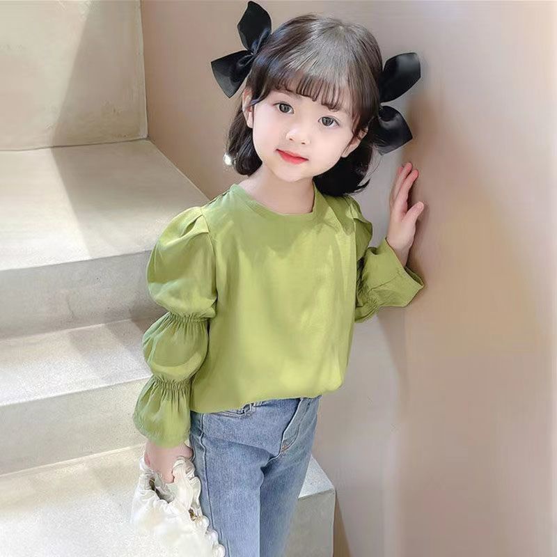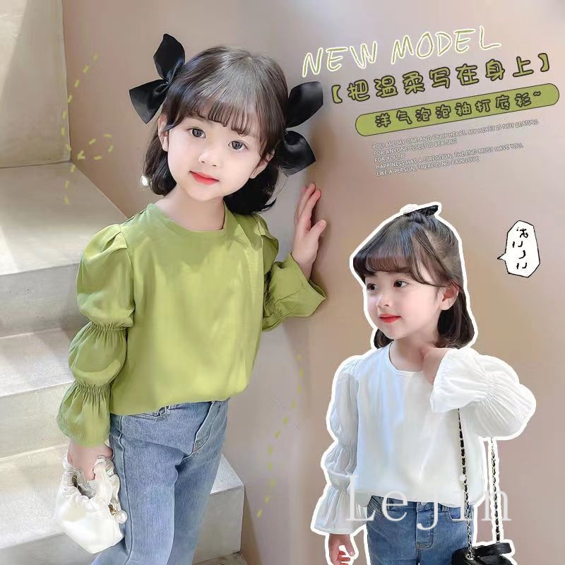 Blouse kids girl shirt boy girl kids blouse long sleeve green blouse kids White puff sleeve blouse girl s clothing 8 9 10 years Baju Raya Perempuan Gift