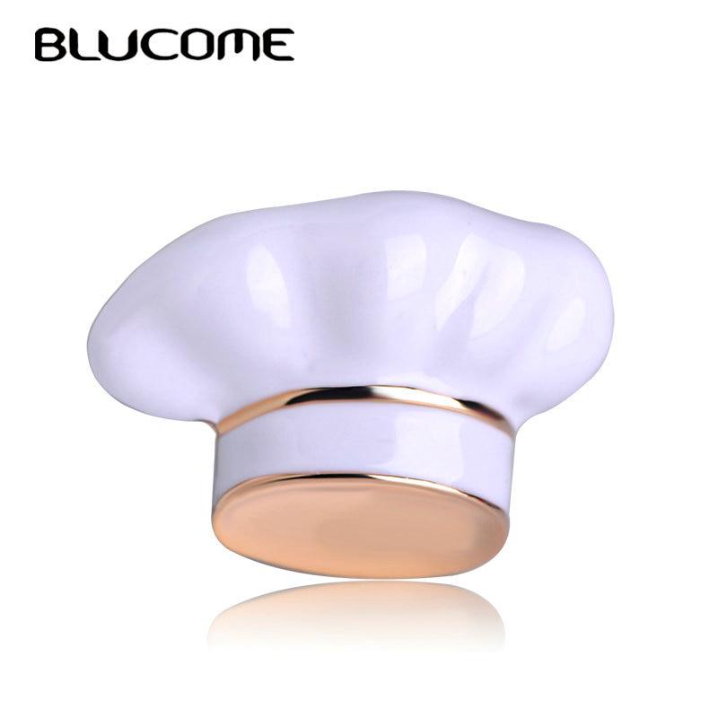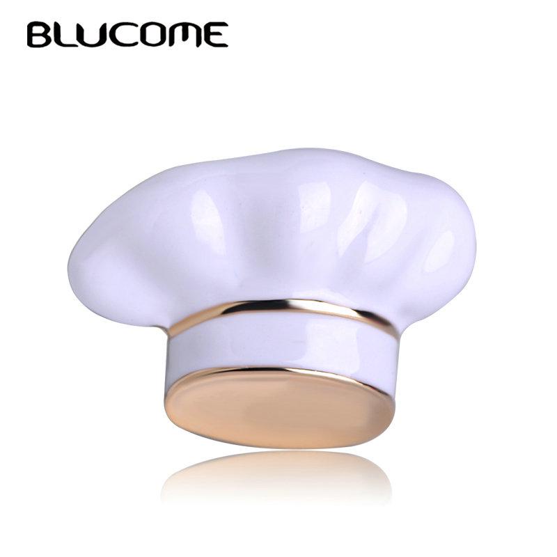 Blucome New Arrival Chef Hat Shape Brooch White Enamel Corsage Women Men Kids Brooches Chef Waiter Pins Hats Sweater Accessories