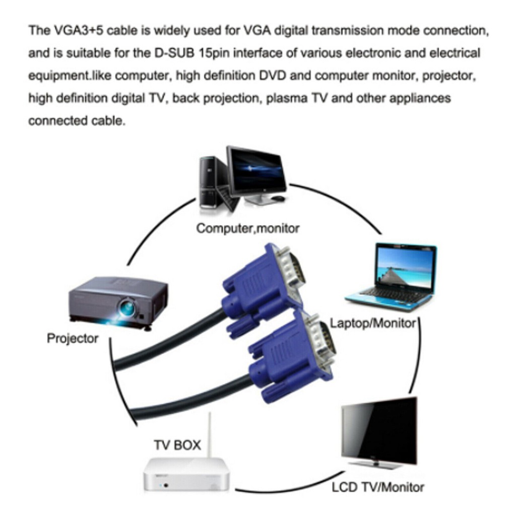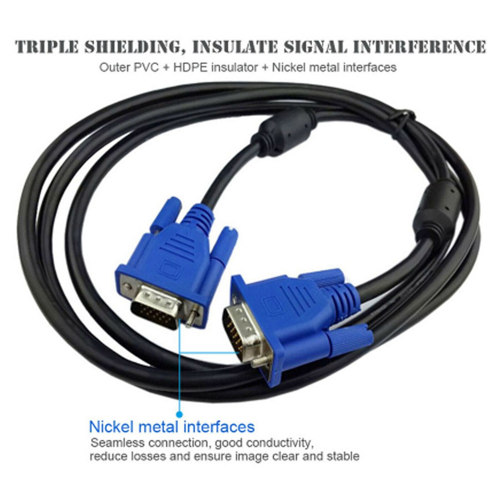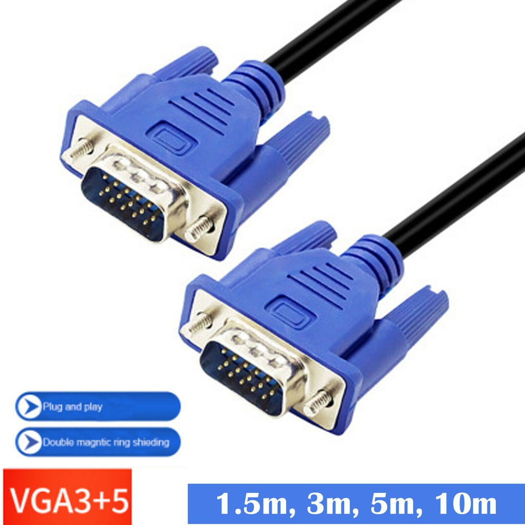 Blue 1.5M/3M/5M/10M/20M 15 Pin VGA To VGA SVGA Lead Monitor Cable Cord Computer Monitor Extension Cable Projector Monitor