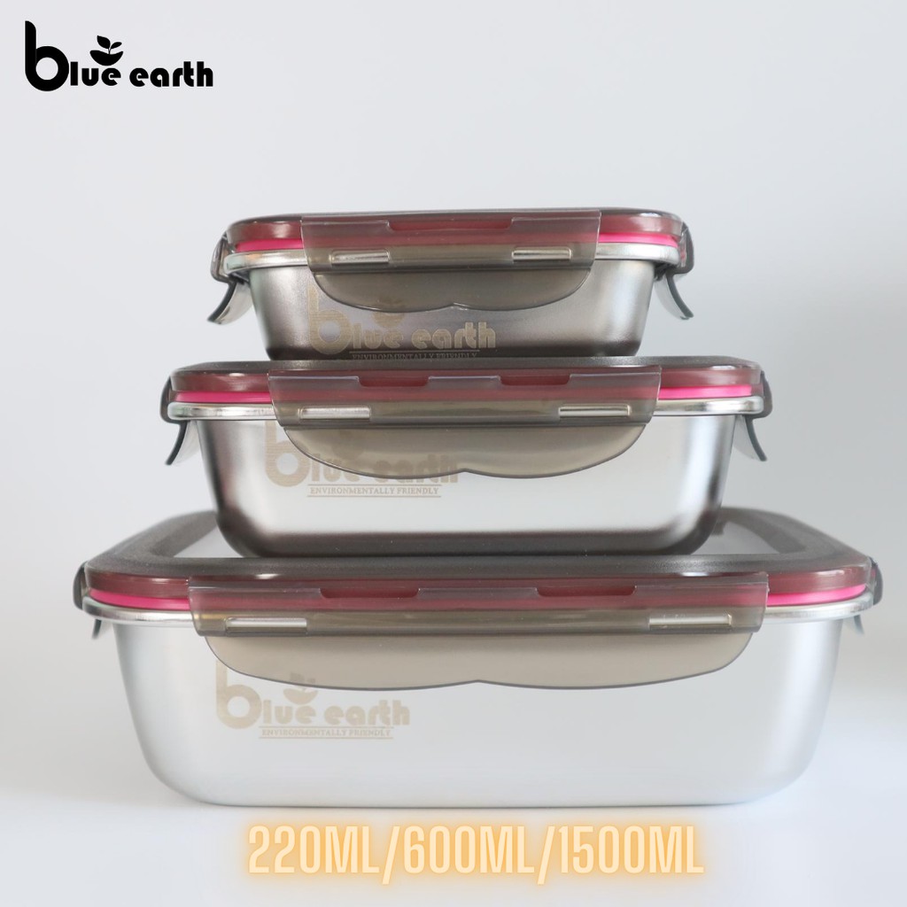 Blue Earth Airtight Stainless Steel Storage Lunch Box Food Container Food Box Kitchen Storage Container Food Storage