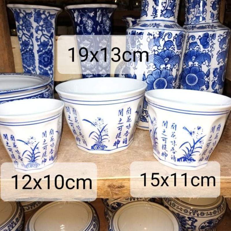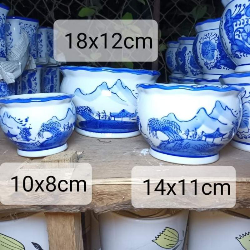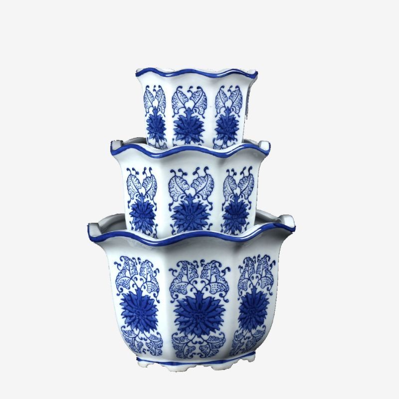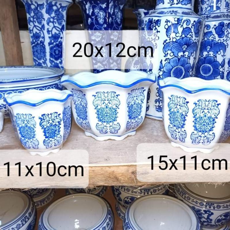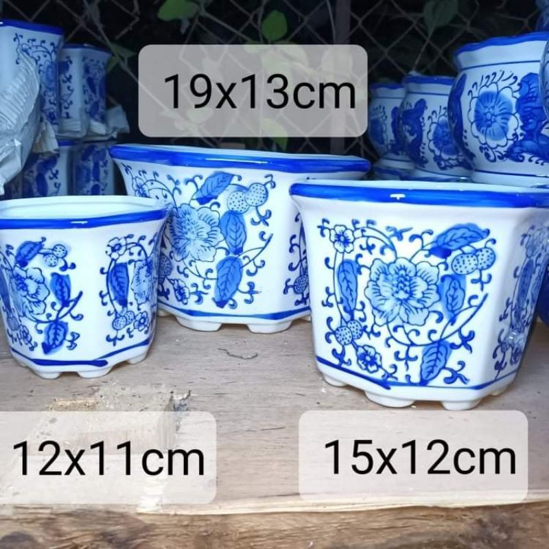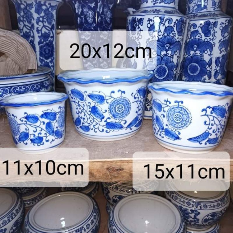 Blue and white ceramic pots (3in1 )