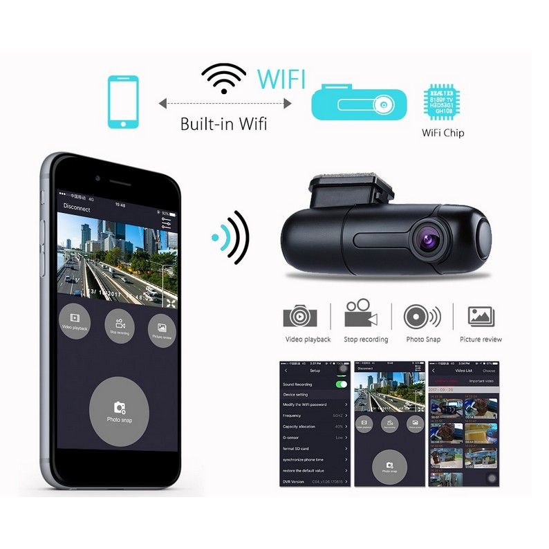 Blueskysea B1W HD 1080P Mini WiFi Car Dash Camera DVR Vehicle Capacitor 360°Rotate Angle