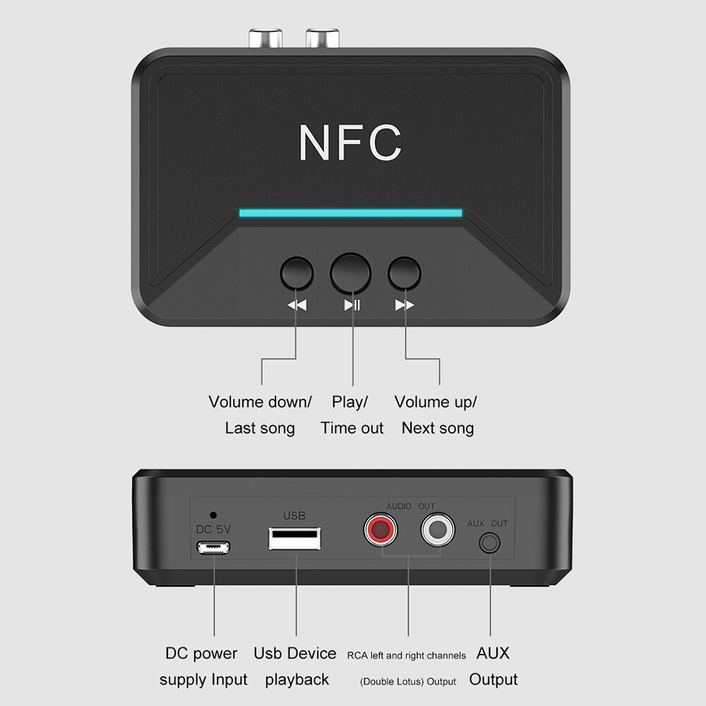 Bluetooth Audio Receiver Adapter with NFC Support 3.5mm RCA USB for Speaker Wireless