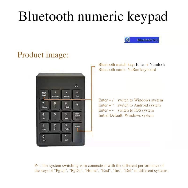 Bluetooth Keypad USB Number Pad 18Keys For Office Accounting Teller Laptop