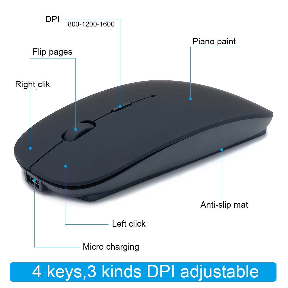Bluetooth Silent Wireless Mouse Rechargeable Built-in Battery 2.4Ghz USB Computer Mause for PC Laptop