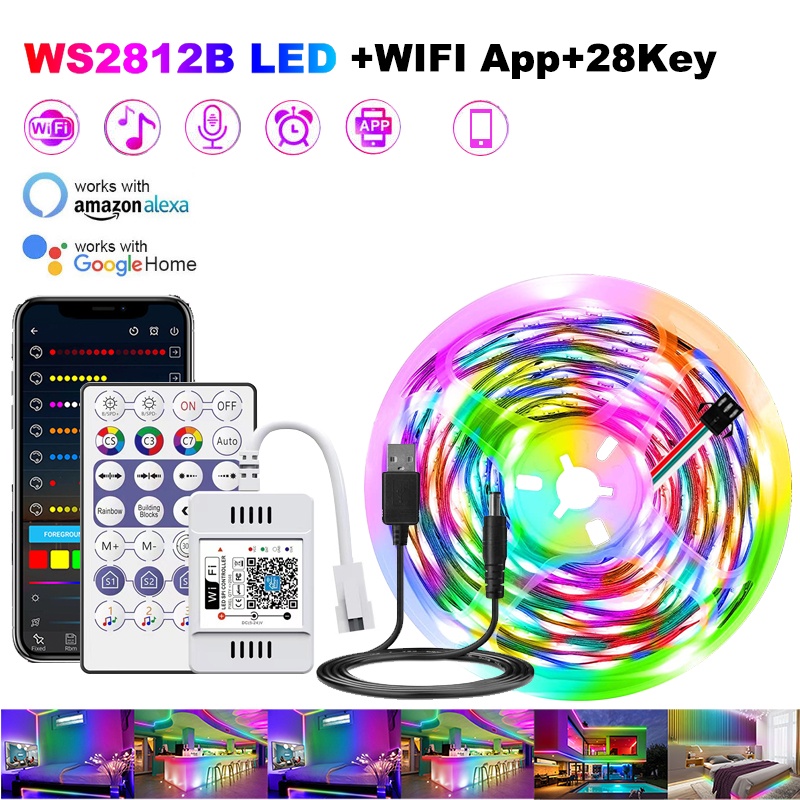 Bluetooth Wifi APP LED Strip Light USB WS2812B RGBIC 5050RGB Remote Control Flexible Diode Lamp Tape 16 Color Support Alexa for TV Desktop BackLight and Home Decoration