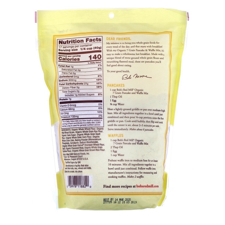 Bob's Red Mill - Organic 7 Grain Pancake&Waffle Mix(whole Grain) 680g