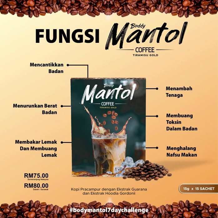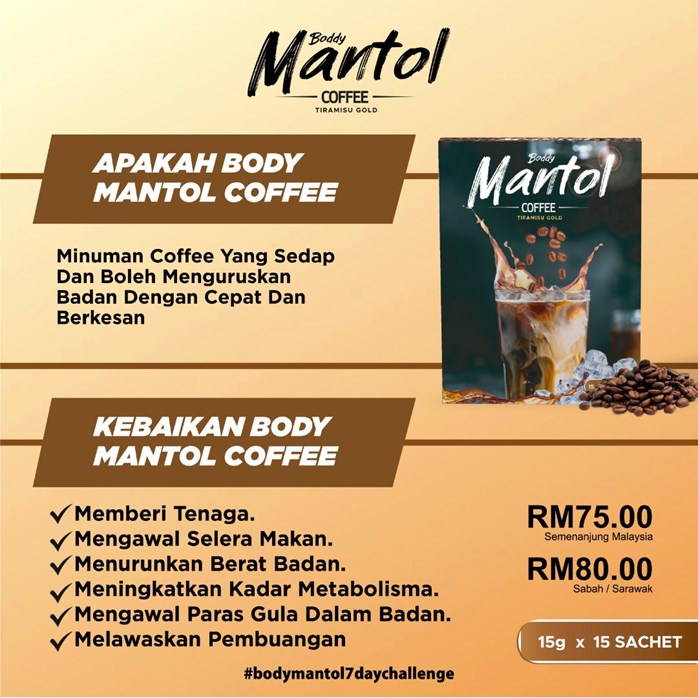 Boddy Mantol Coffee ( Kopi ) / Mantol Chocolate 15 Sachet @ 20gr By Dato Aliff AS Legacy