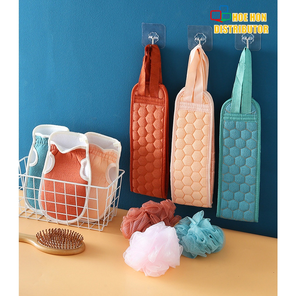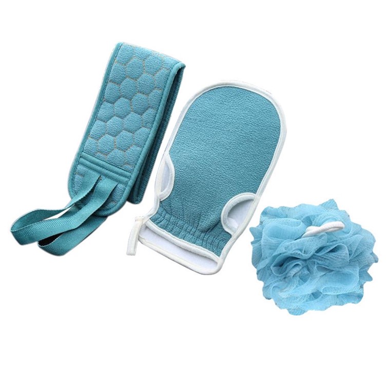 Body Skin Exfoliating Scrub Puff Ball Scrub Glove Back-Scrub Towel 3 in 1 Bathroom Shower Set