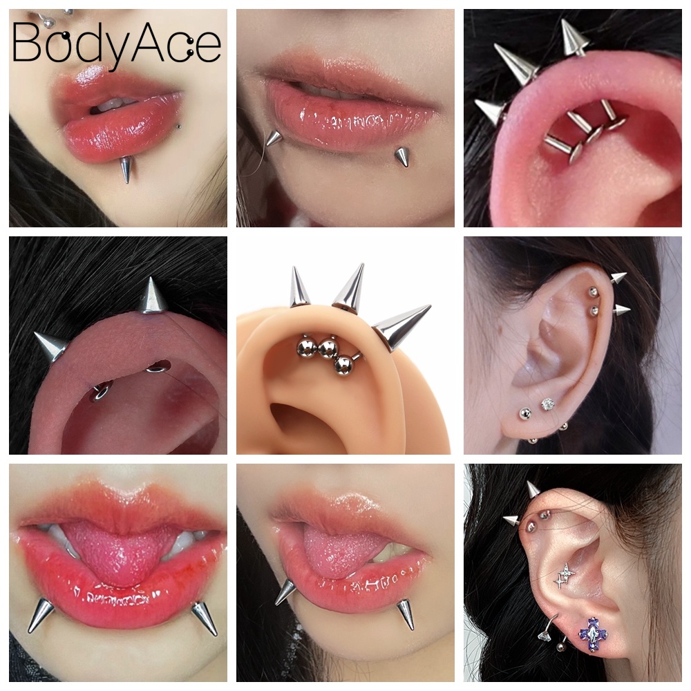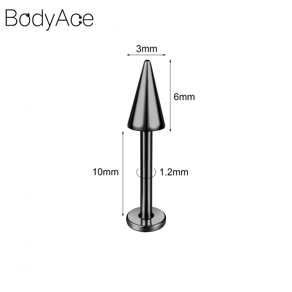 Bodyace 1 PC 16G/18G Punk Demon Long Spike Labret Lip Piercing Stainless Steel Cartilage Stud Earrings Cone Conch Helix Piercings