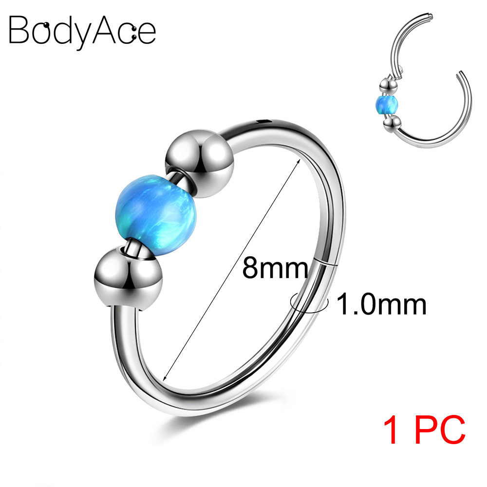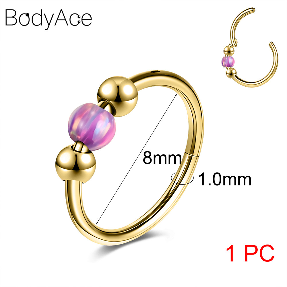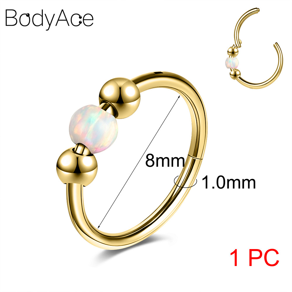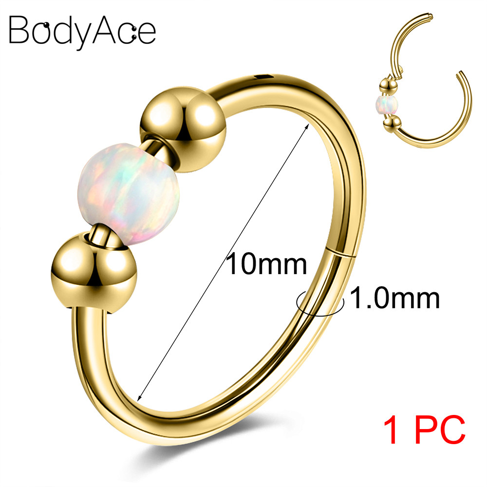 Bodyace 1 Pc 18G Nose Piercing Stianless Steel Nose Ring Opal Nostril Piercing Gold Septum Ring Circle Body Piercing