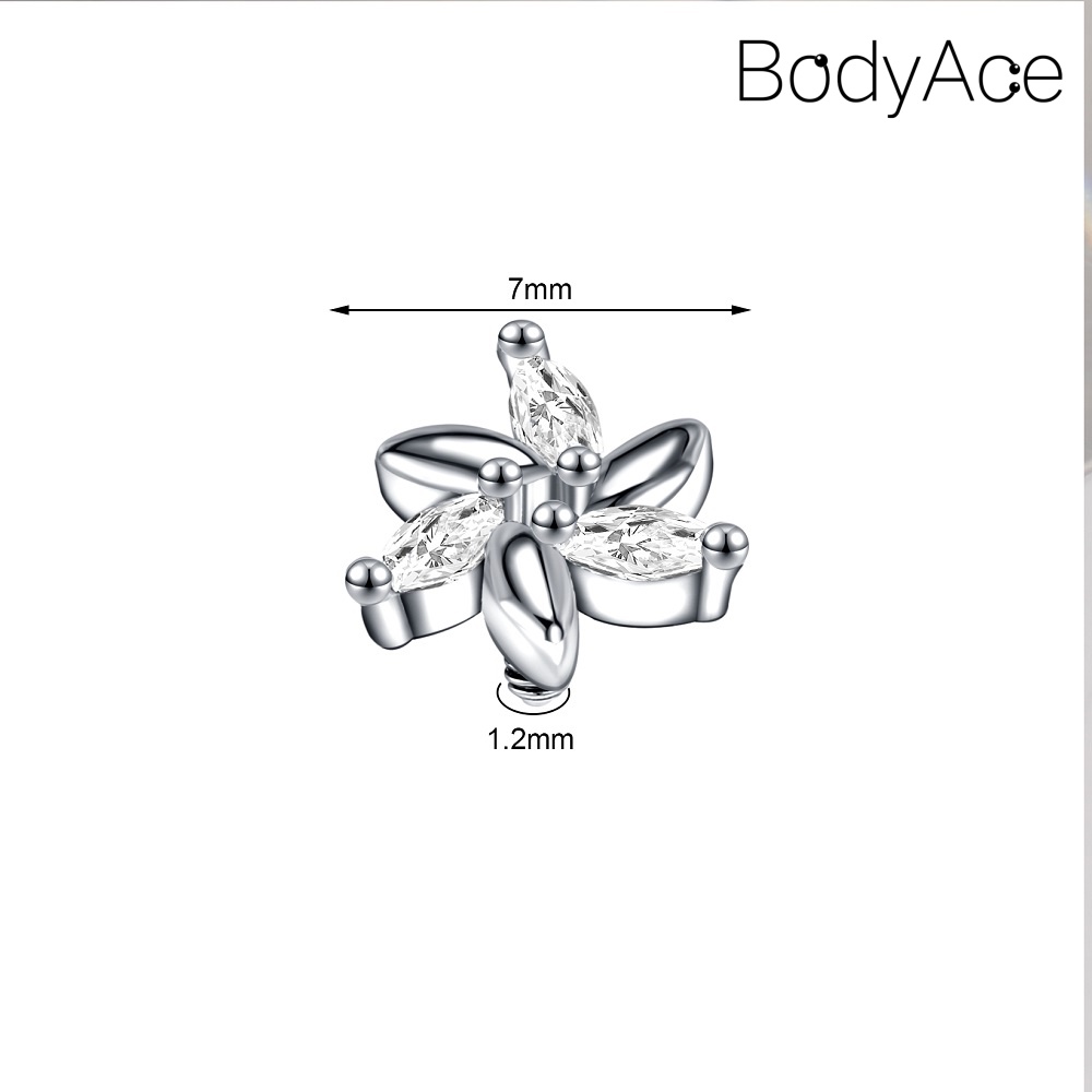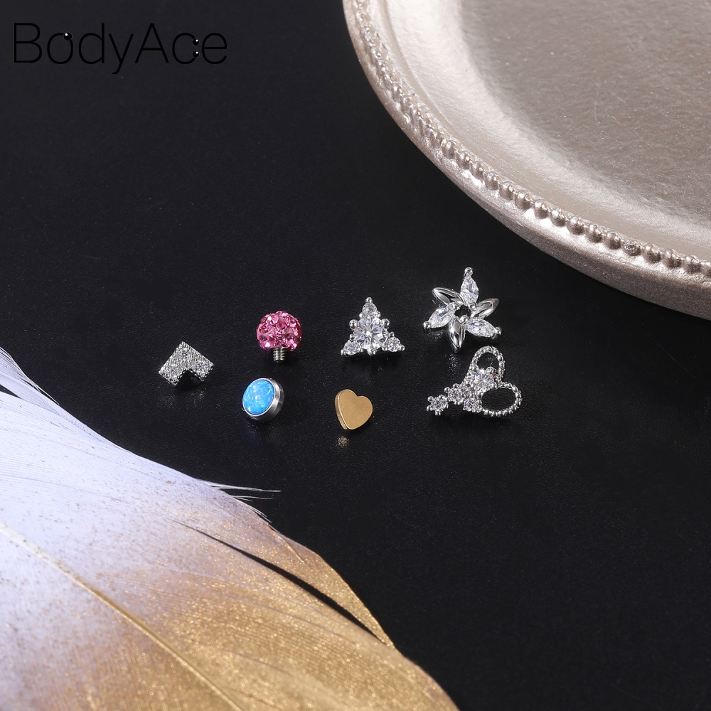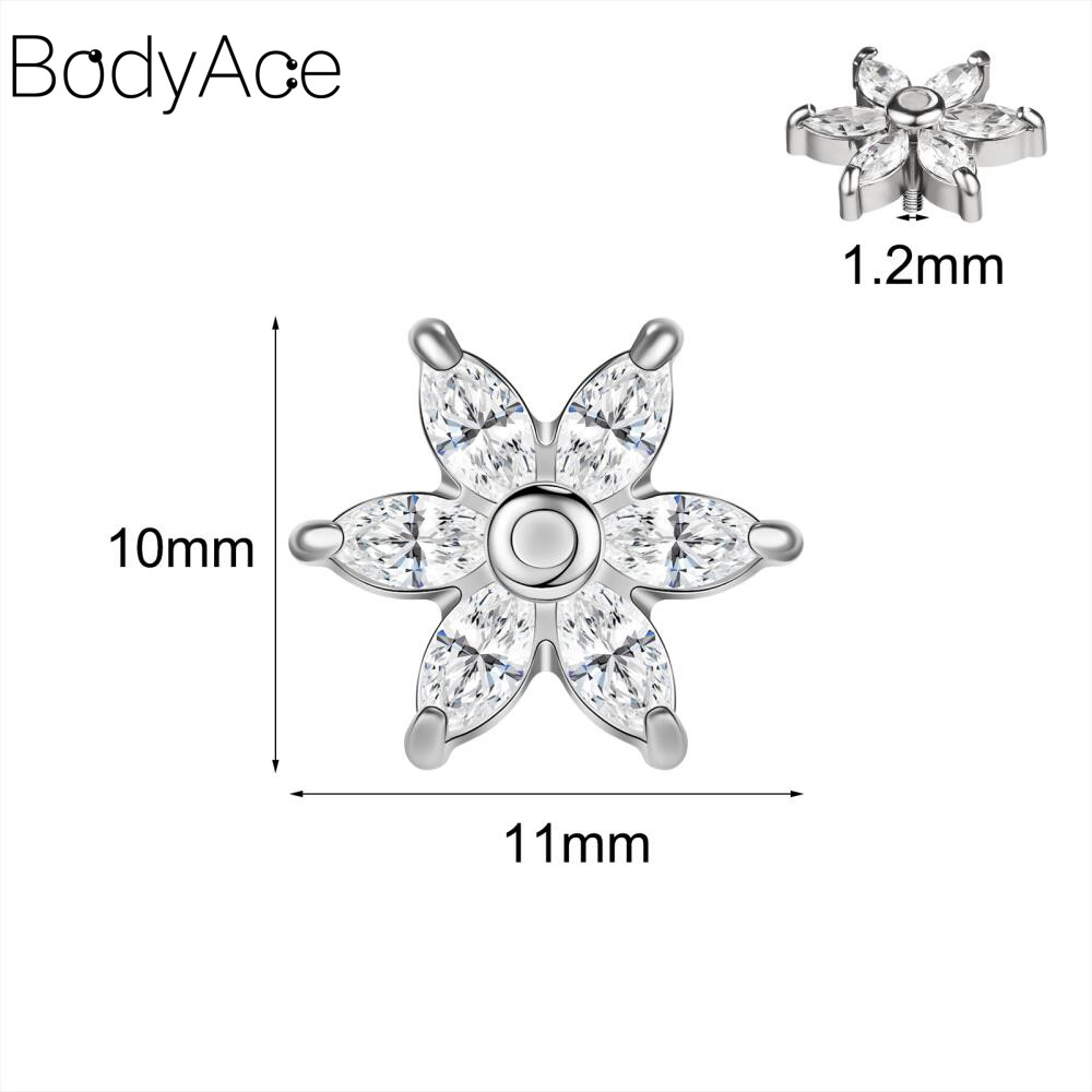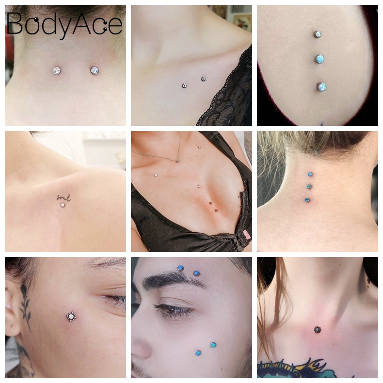 Bodyace 1 Pc Opal Dermal Anchor Flower Crystal Micro Dermal Piercing Stainless Steel Prevent Allergy Sex Body Piercings