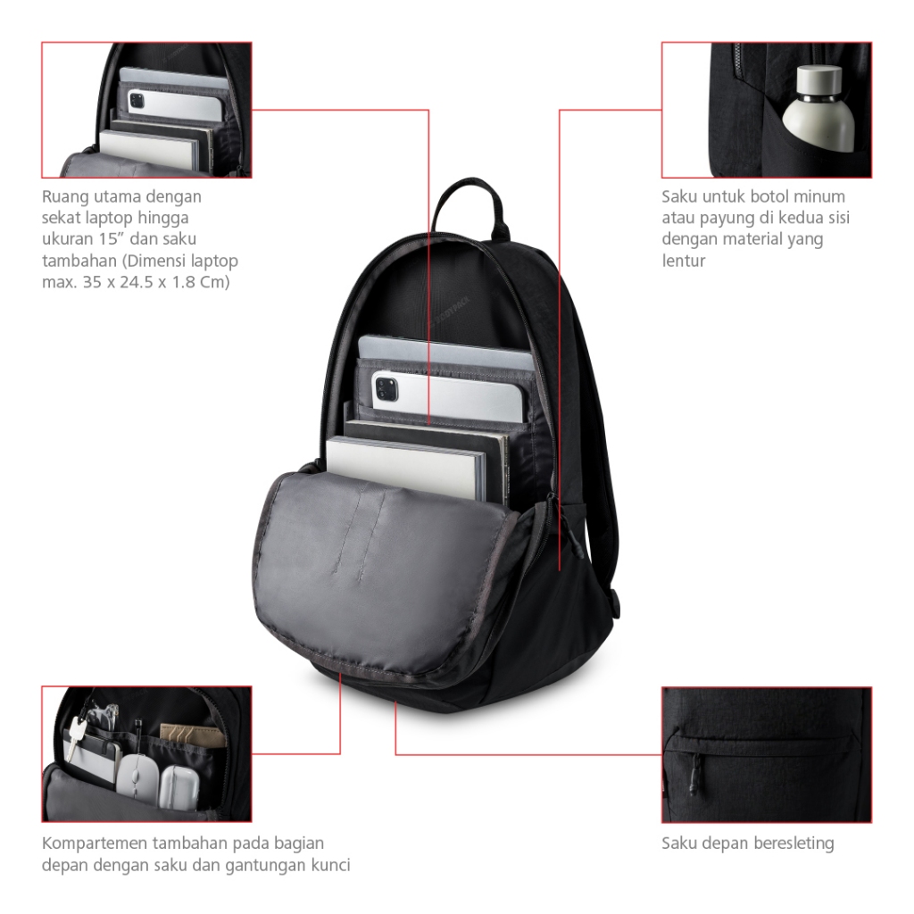 Bodypack Barrow Laptop Backpack 15 Inch Lightweight Stylish Work College School Backpack 24 L - Black
