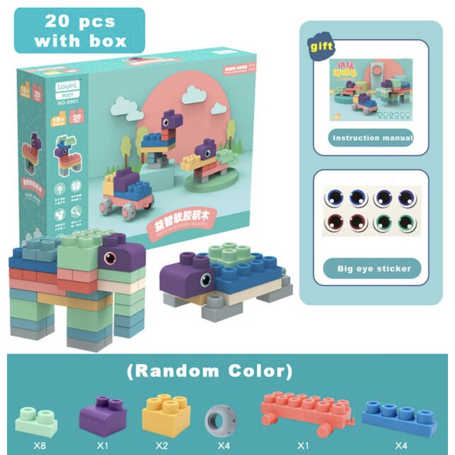 Boo&Bub Baby Soft Rubber Big Size Building Blocks Baby Blocks Chewable Early Educational Soft Building Blocks Toy Mainan