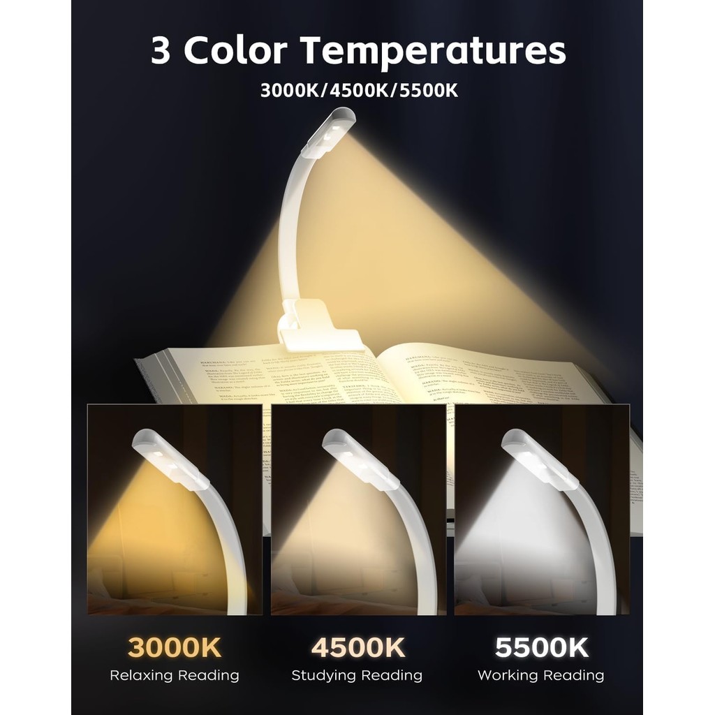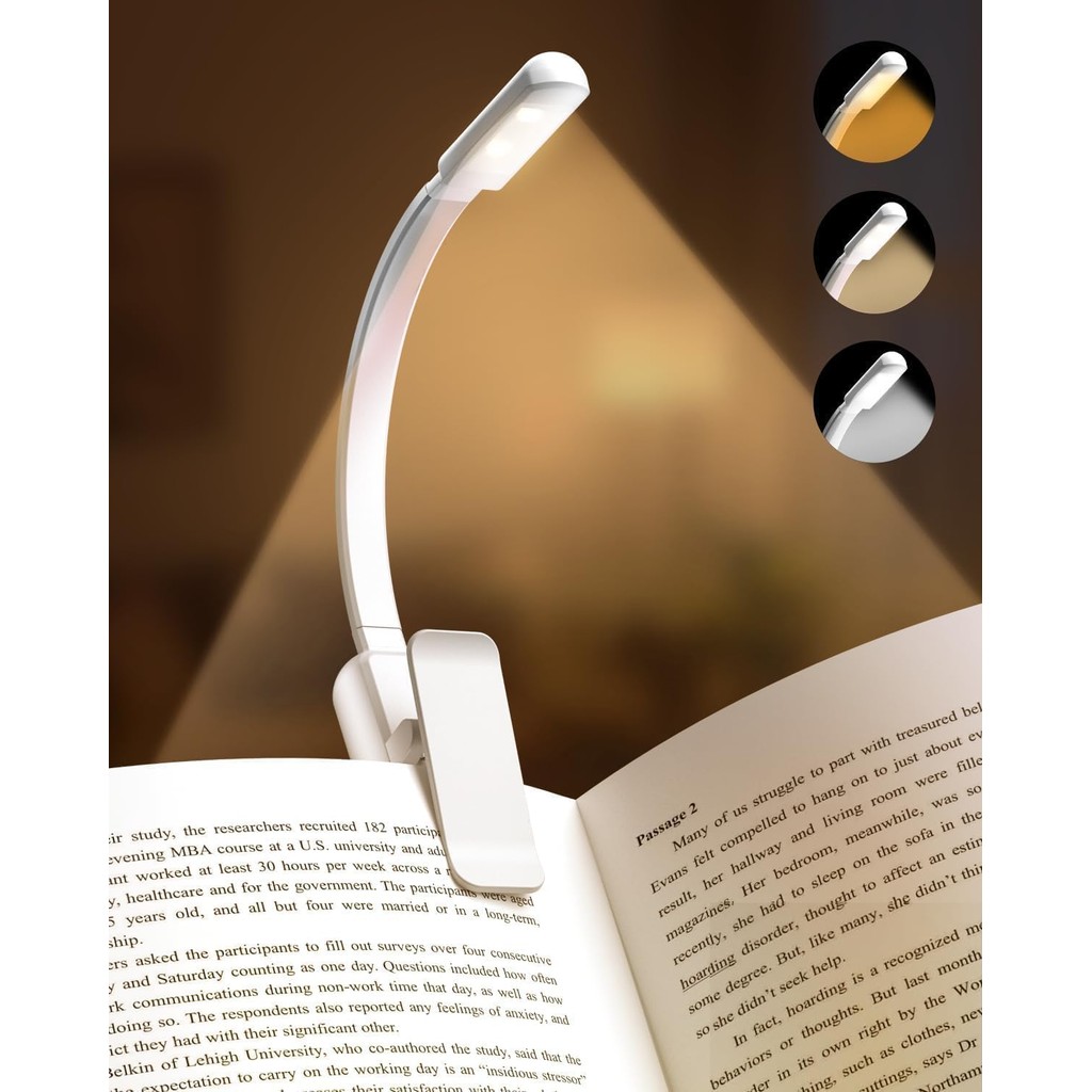 LED Book Light Bed Reading, Portable Clip On Book Lamp with Stepless Dimming & 3 Colour Modes, Battery-Powered/USB Rechargeable, Eye Care/Protection Amber/Warm Flicker-Free Study