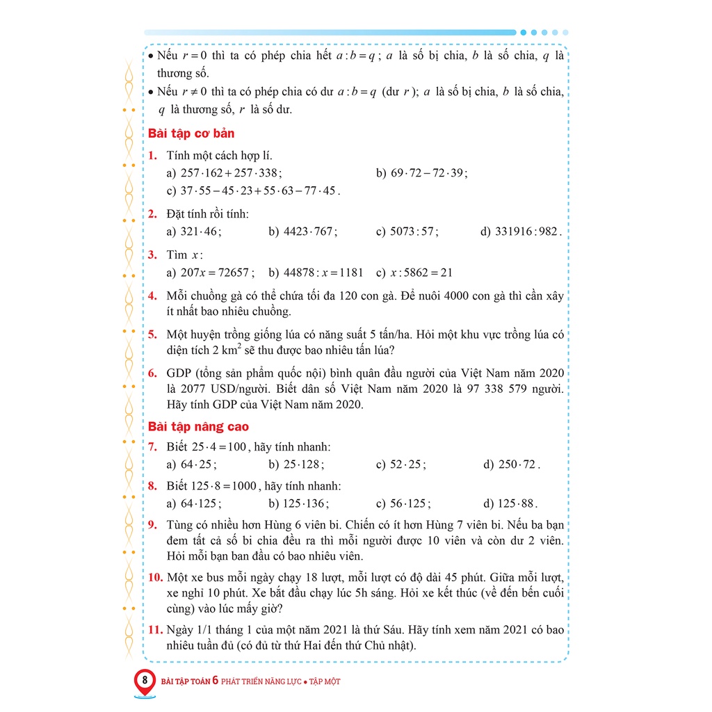 Book - Math exercises for grade 6 to develop capacity, volume one (Compiled according to MATH 6 textbook - Volume 1 - KITE WINGS...)