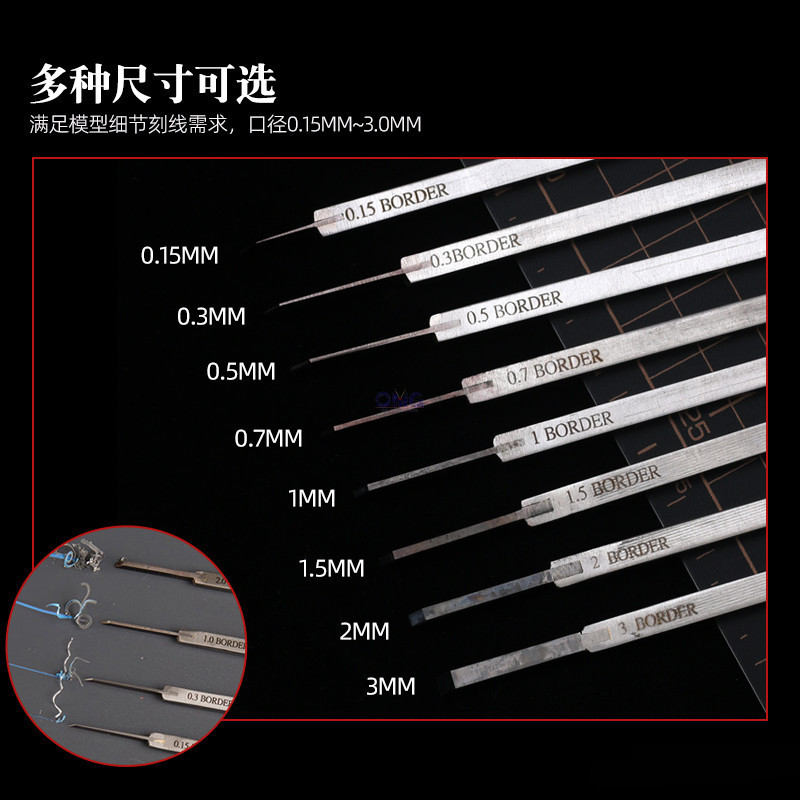 Border Cemented Carbide Engraver Chisel Blade BD0007 0.15mm - 3.0mm / Chisel Handle ONLY (Black) BD0033 Gunpla Tool OMG