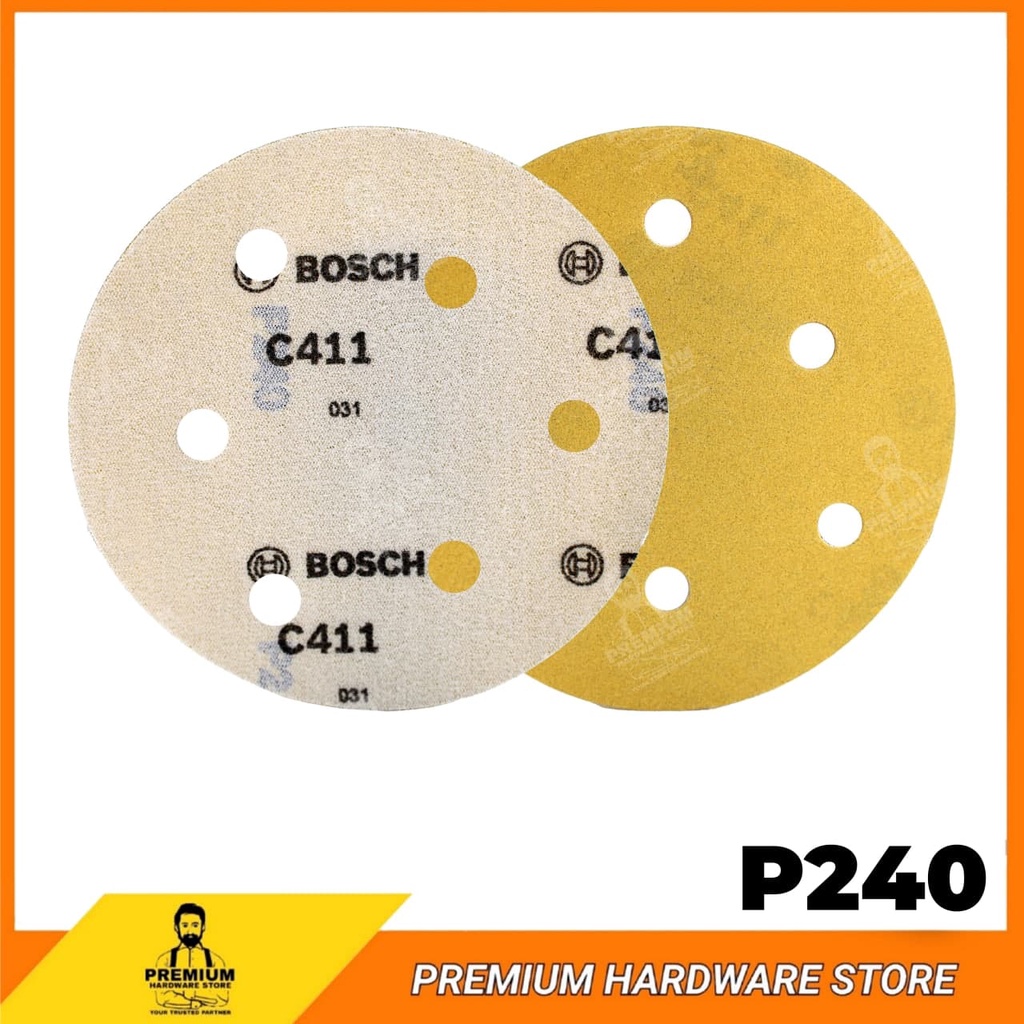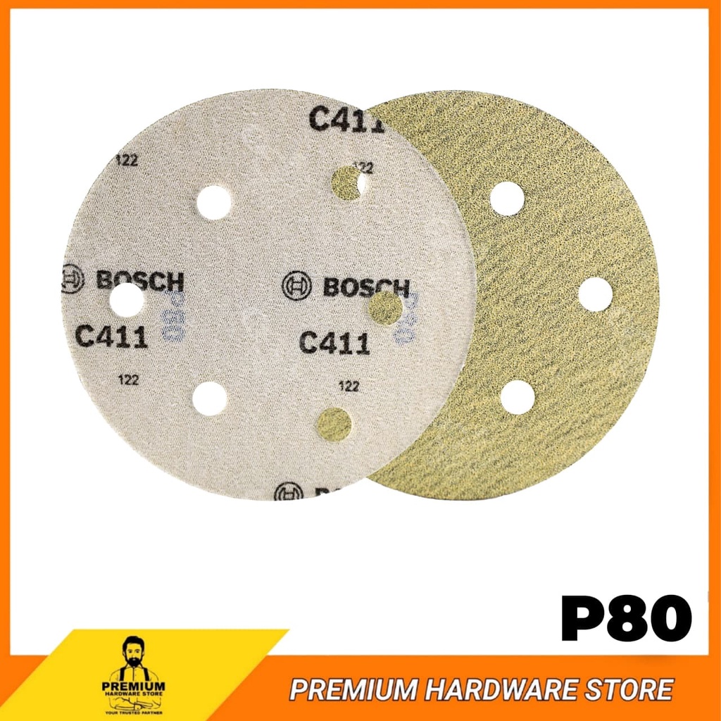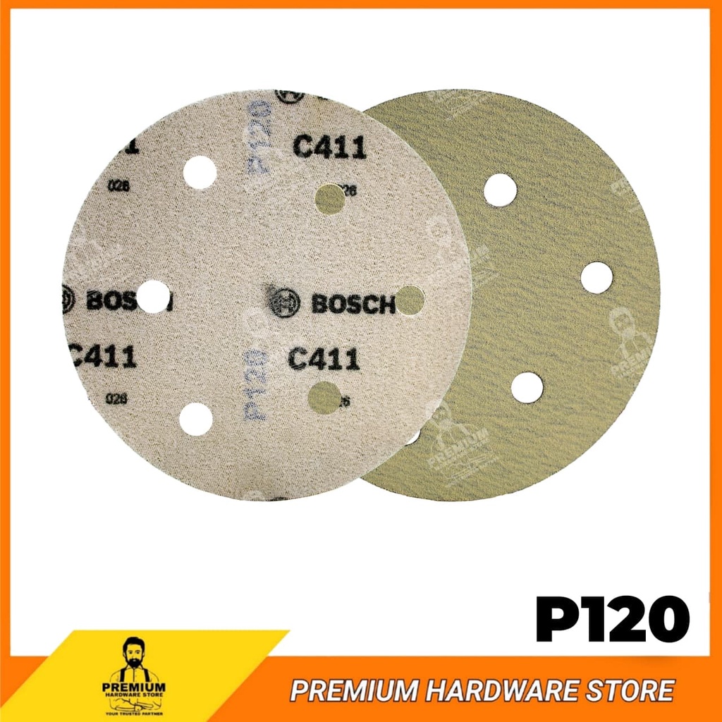 Bosch 125mm 6 Hole C411 Sand Mesh Grip Disc Wood Sanding Orbital Sander Kertas Pasir Bulat Hook Loop