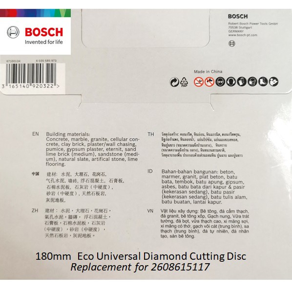 Bosch 7 Inch 180mm Universal Diamond Cutting Disc For Brick wall, masonry & Cement surface - 2608615113