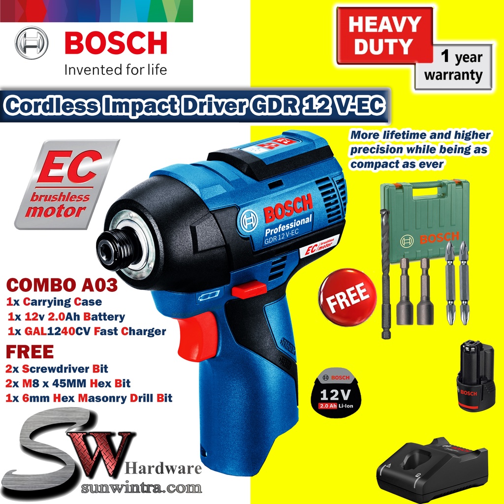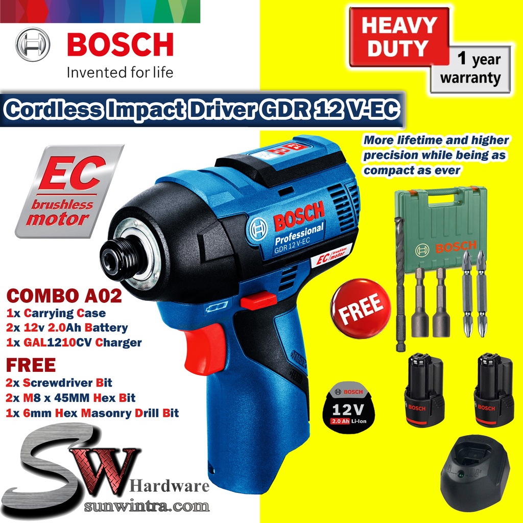 Bosch Cordless Impact Driver GDR12V-EC Professional F.O.C 5Pcs Drill & Driver,**SOLO or Battery & Charger Set GDR 12V-EC