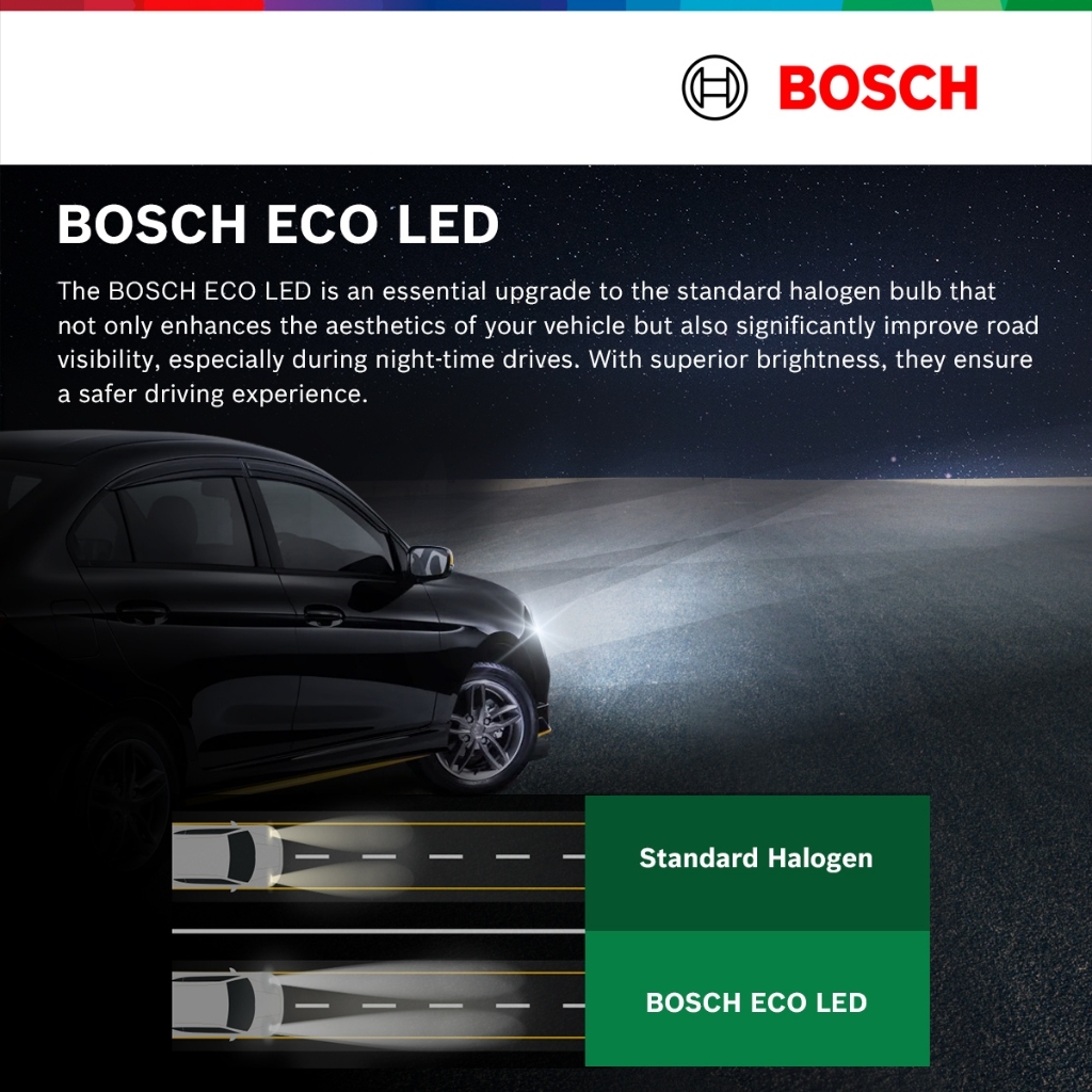 Bosch Eco H4 / H7 LED Headlamp Bulb Cool White (2pcs) 12V 24W H4 / H7 Bulb Lampu Mentol Depan Putih Headlight