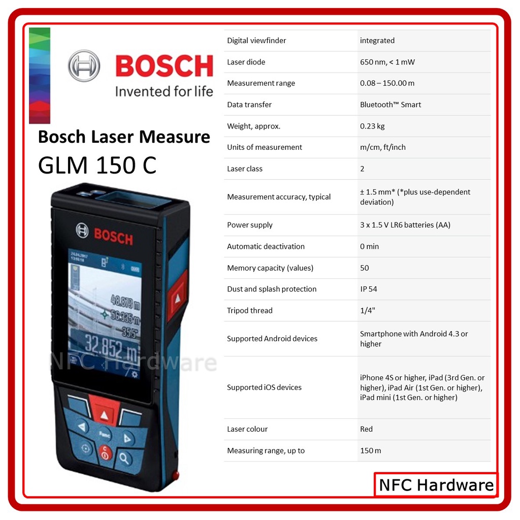 Bosch GLM 150 C Laser Measure 150 Meter (with Bluetooth)