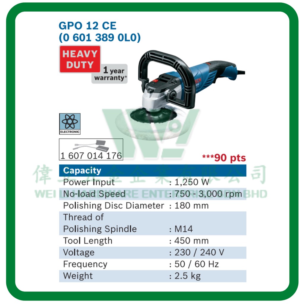 BOSCH GPO12CE 7" Car Polisher Machine 1250W/Polish Machine/Pad Mesin Polish/Machine Waxing
