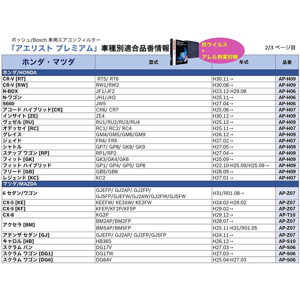 Bosch aeristo premium carbon cabin air filter honda jazz perodua myvi lagi best icon 2018 bezza alza swift sx4 AP-H06