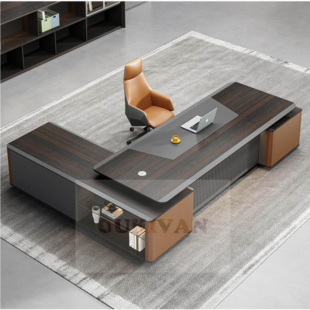 Boss Office Desk Meja Pejabat Luxury Fashion Manager Office Table With Side Cabinet Led Lighting Meja Ofis