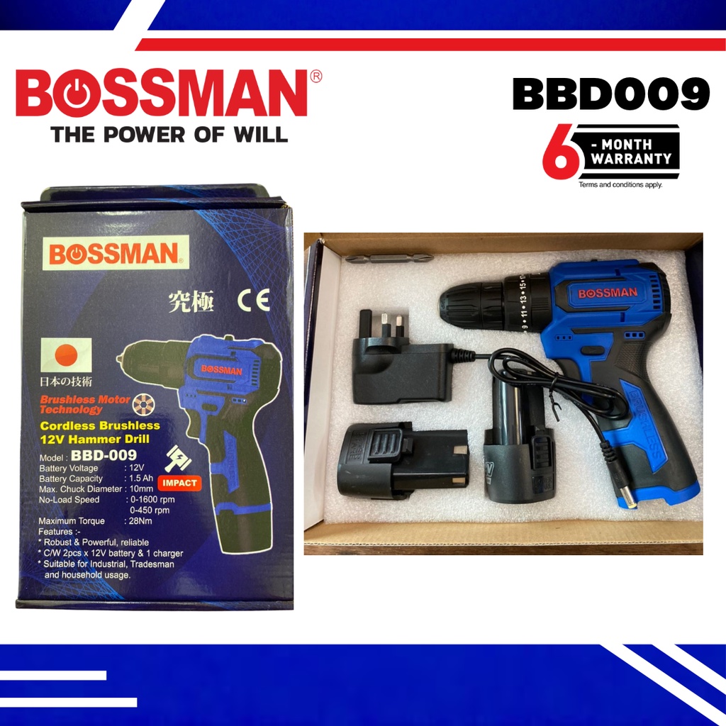 Bossman 12V 28NM Brushless Cordless Hammer Drill BBD009 | 6 Months Warranty