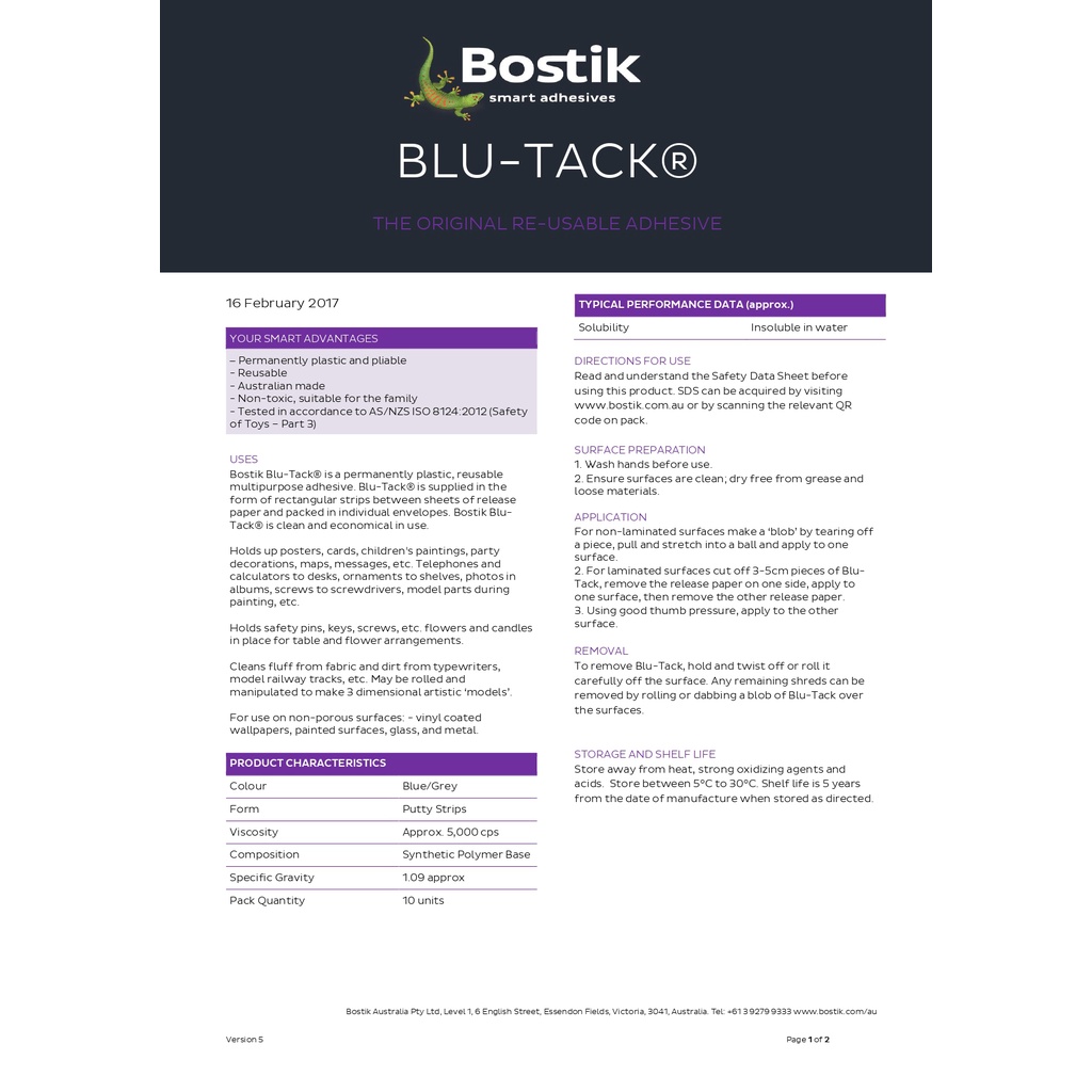 Bostik Blu-Tack "The Original Re-Useable Adhesive'' Pelekat Boleh Guna Semula Asal Original Blue 75g