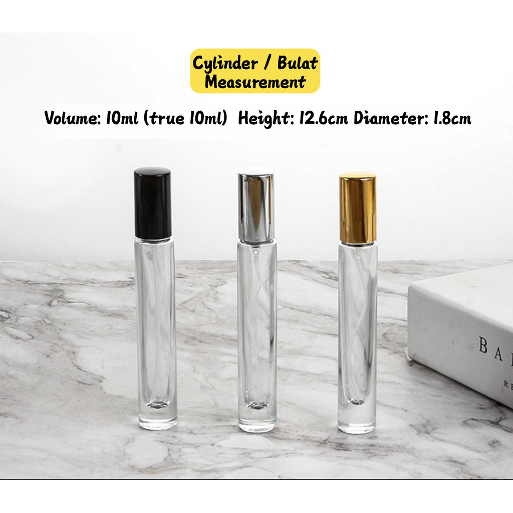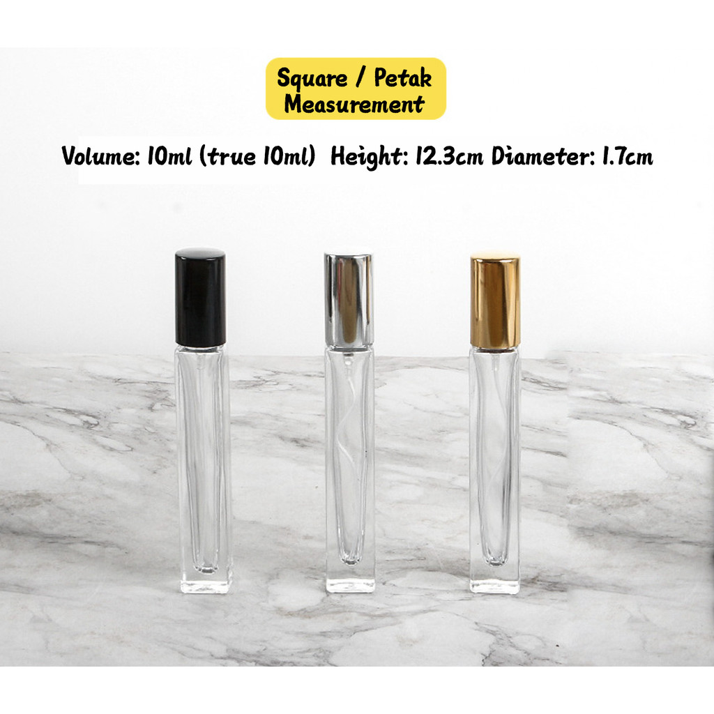 Botol Parfum Petak Cylinder 10ml Thick Glass Perfume Bottle Square Round with Aluminium Spray Head for Decant