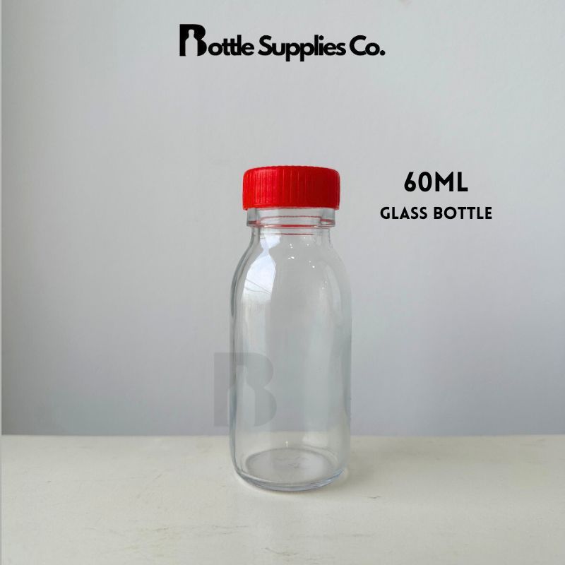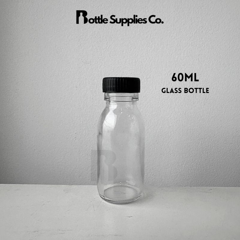Botol Viral 60ml Botol Kaca Mini/ 60ml Clear Glass Round Bottom Bottle for Everyday Vitamic Booster, Juice Shot Glass