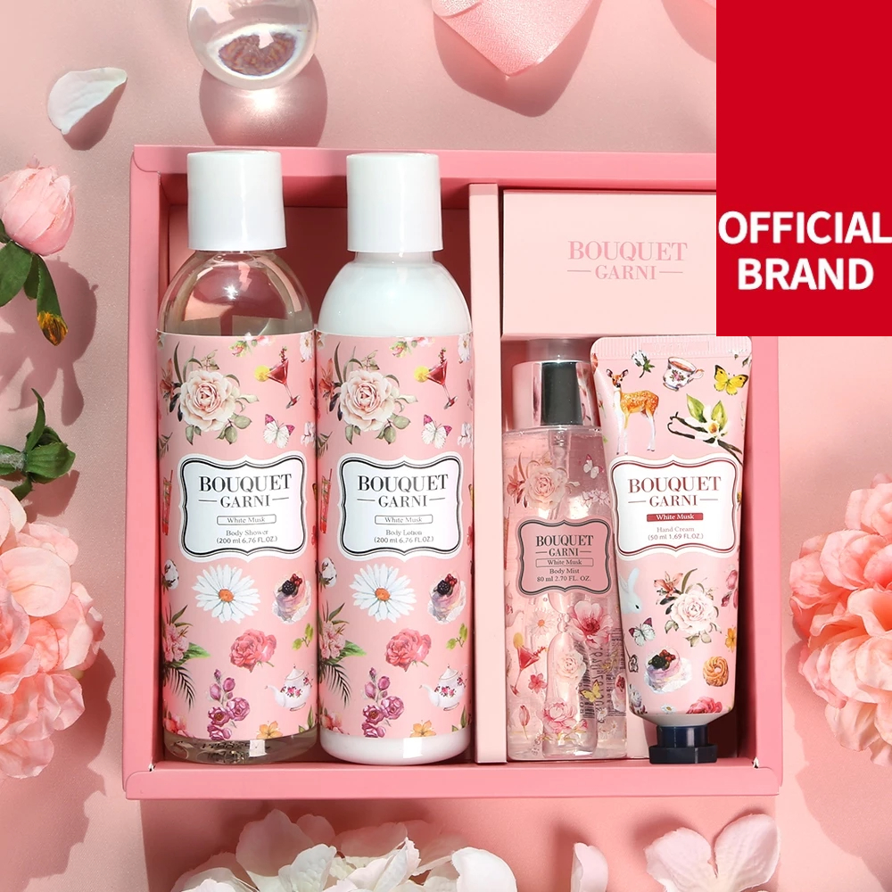 Bouquet Garni Hand And Body Care Gift Set Body Wash, Lotion, Mist, Hand Cream Amenities, Toiletries (200/200/80/50ml)