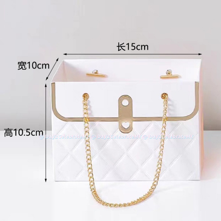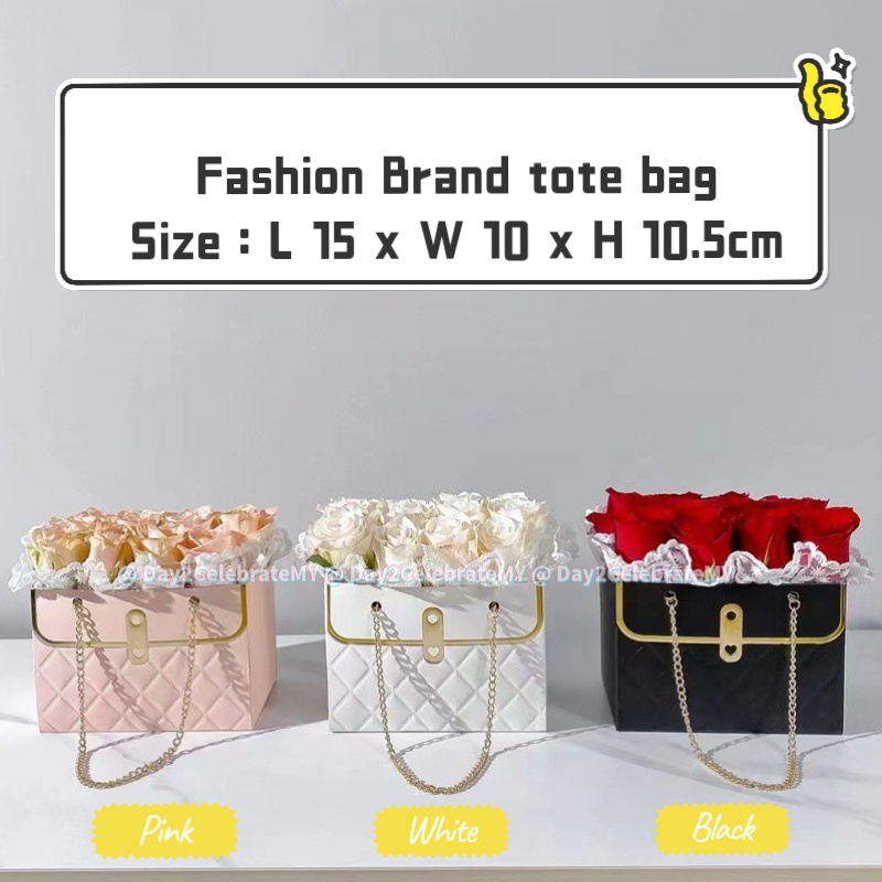Bouquet Tote Rectangular Paper Flower Bag Chain Handle And Diamond Pattern Box Florist Gift Decoration