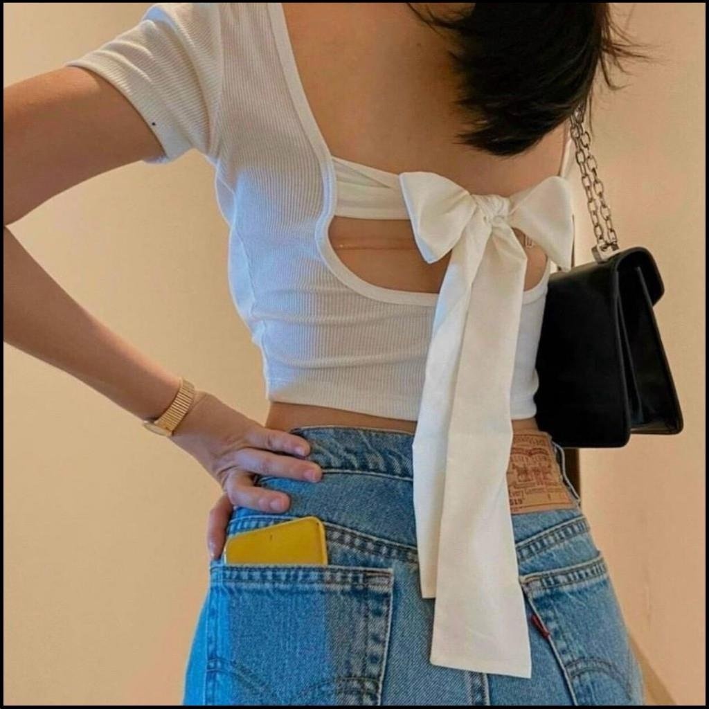 Bow Tie Crop Top - Super Cute Thick Bodycon Women's Crop Top HARI