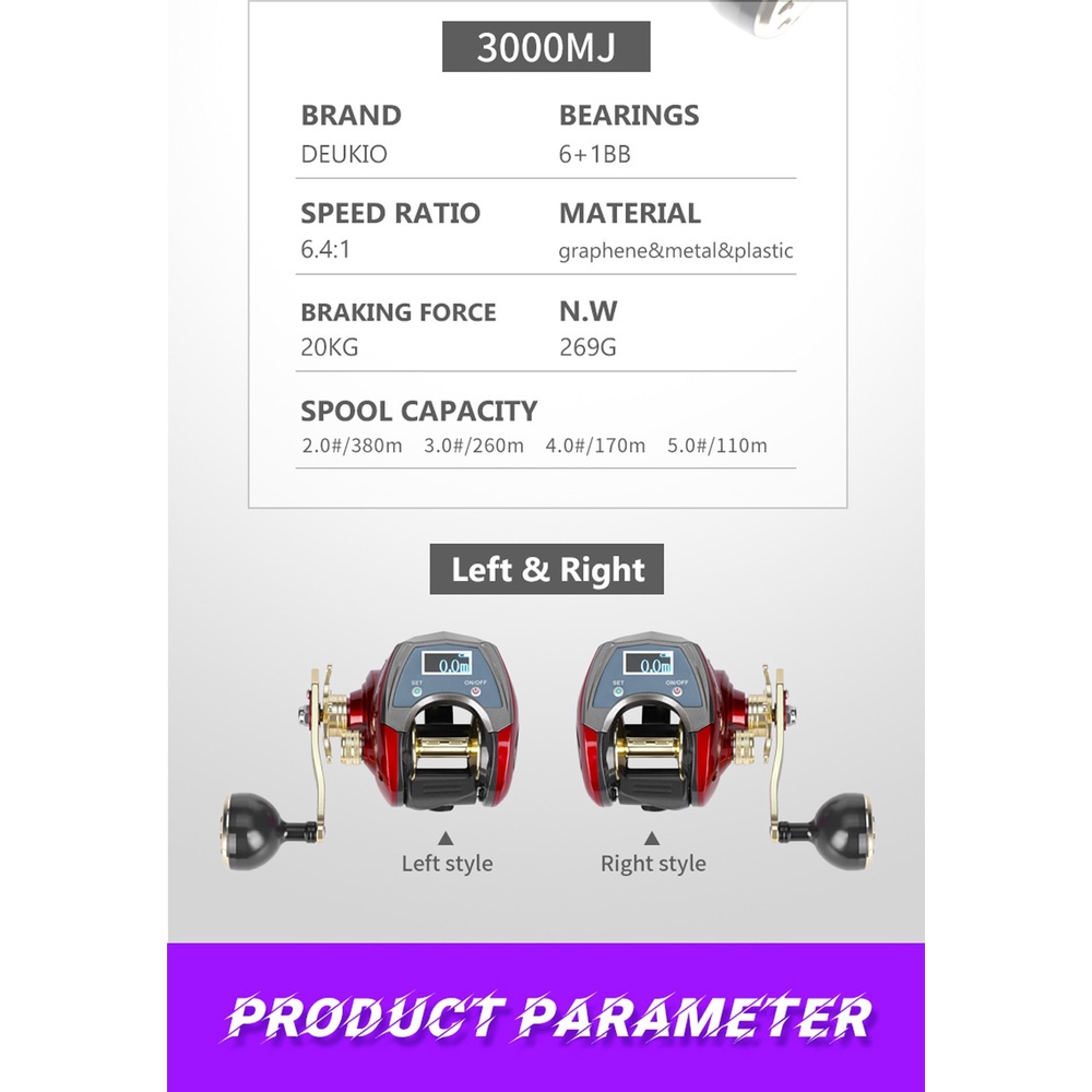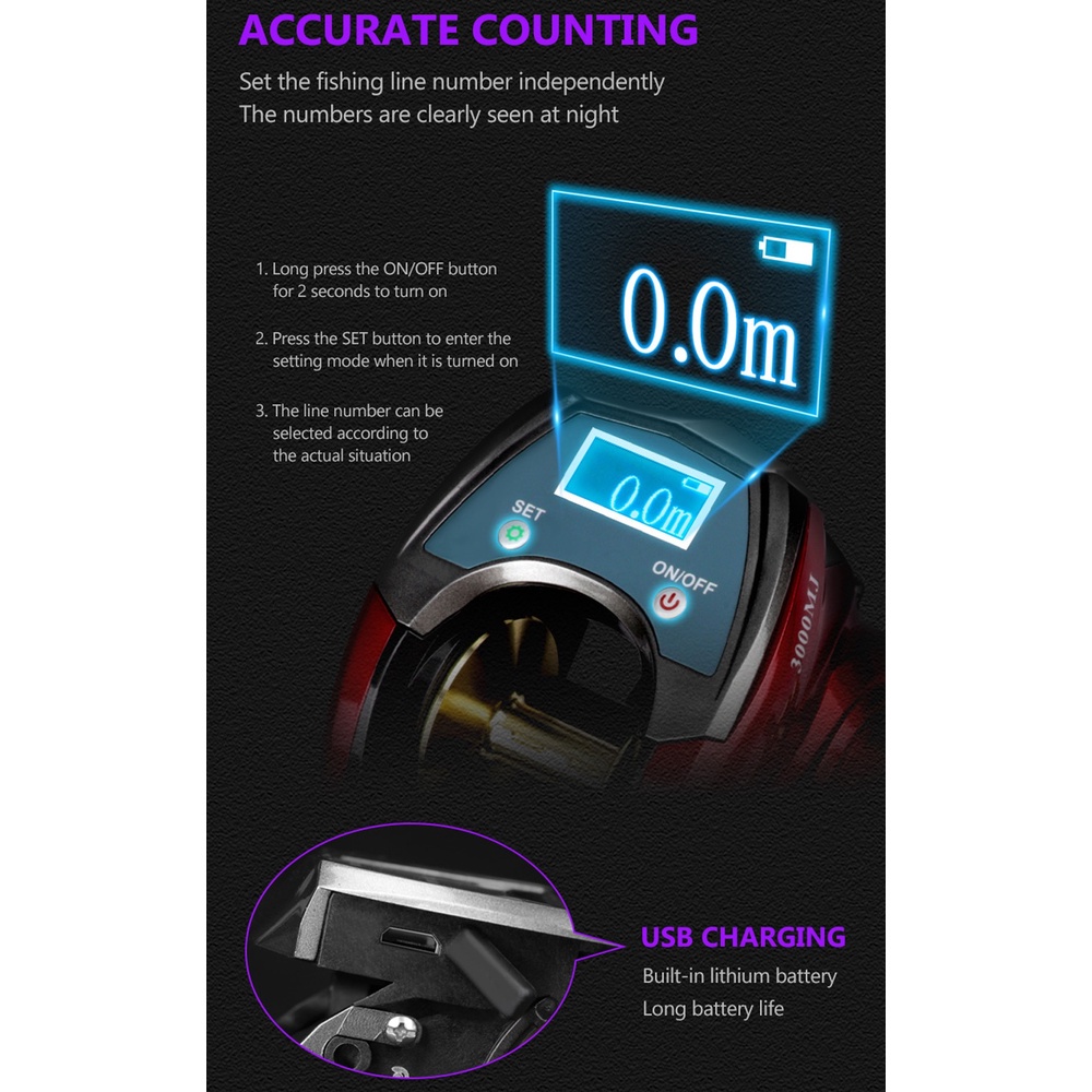 Brand Electronic Fishing Reel Line Account Reel Digital Wheel 6+1BB Metal Coil Reel 6.4:1 Power Boat Fishing Reel Line Count