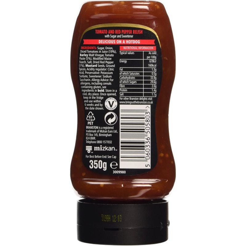 Branston Tomato & Red Pepper Hot Dog Relish Squeezy, 350g