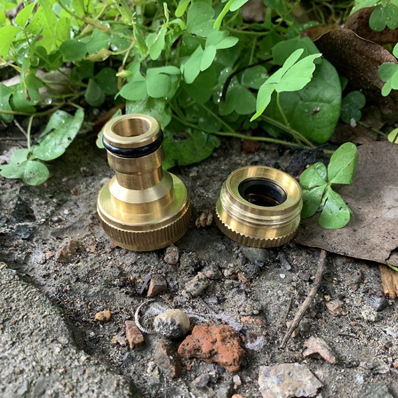 Brass Garden Hose Connector Pipe Fittings 1/2 + 3/4 Inch Hosepipe Tap Connector 2-in-1 Female Threaded Faucet Adapter