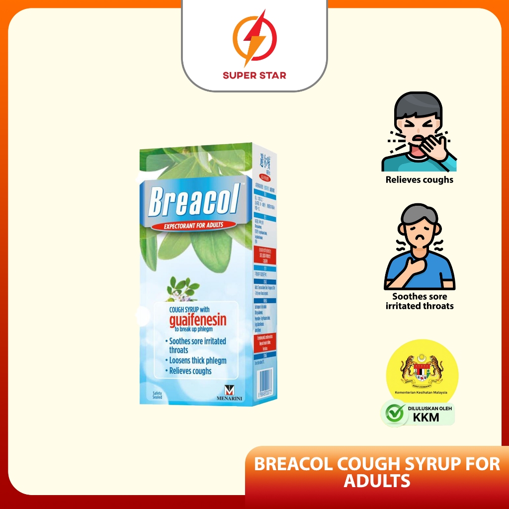 Breacol Adult Cough Syrup, Irritated Throat 60ml Ubat Batuk (Exp 08/2027)