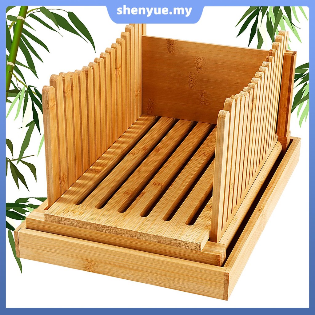 Bread Slicer Bamboo Bread Slicing Guide Foldable Toast Bread Slicer 3 Different Thickness Bread Cutting Guide with Crumb Tray SHOPSBC1321