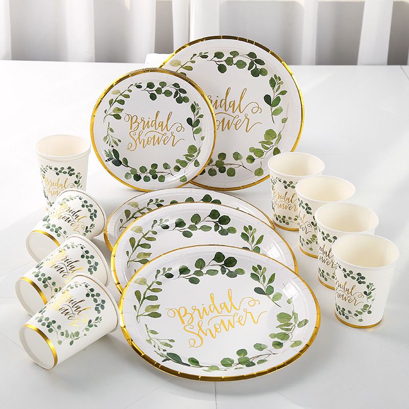 Bridal Shower Disposable Tableware Wedding Decoration 16PCS (Paper Plate /Paper Cup)
