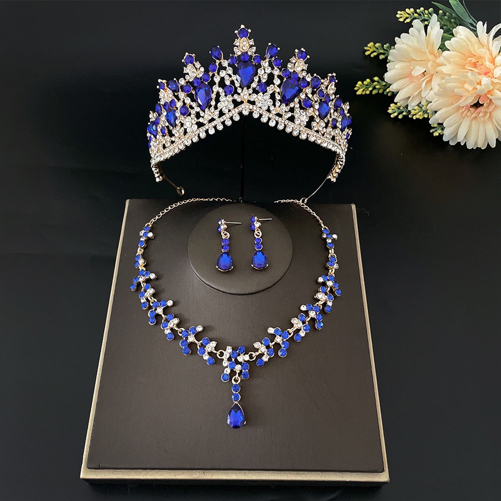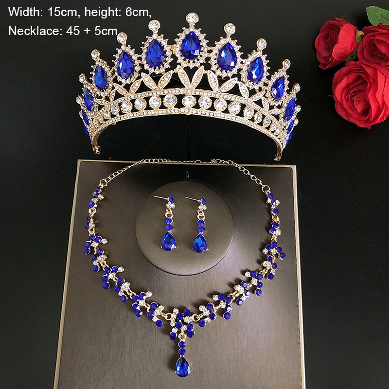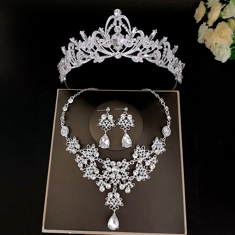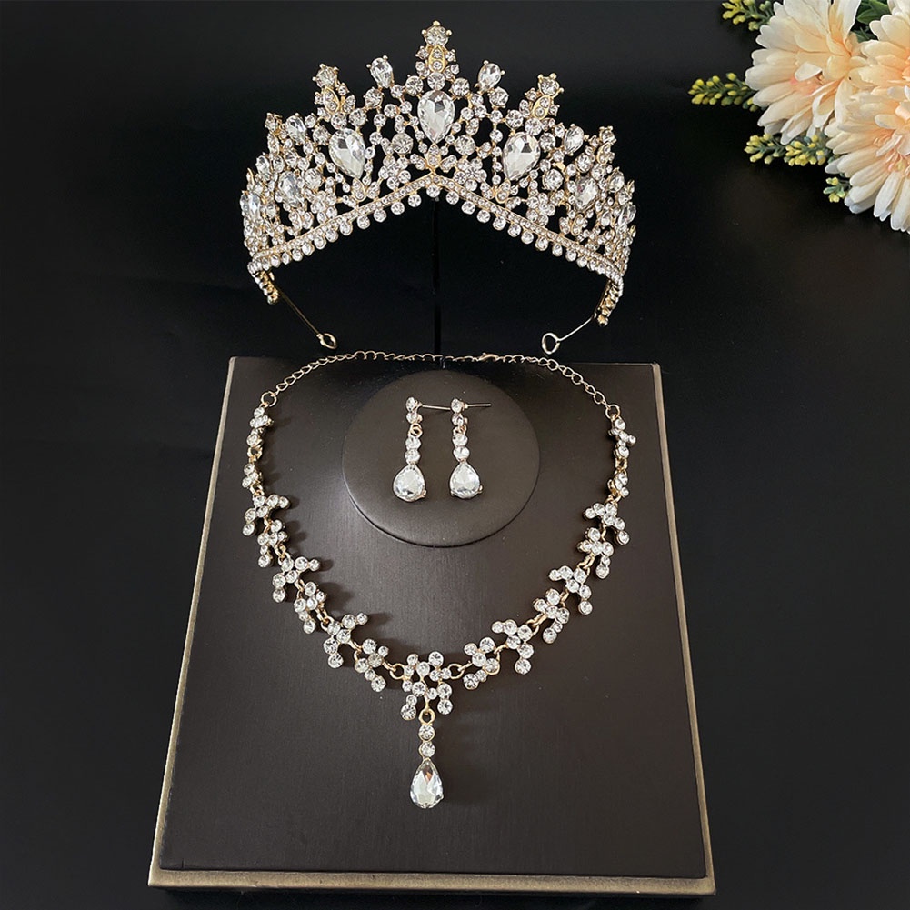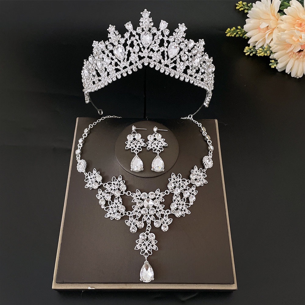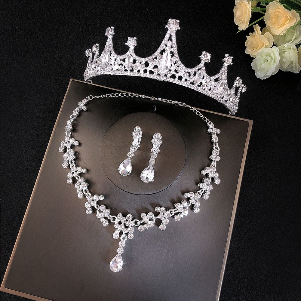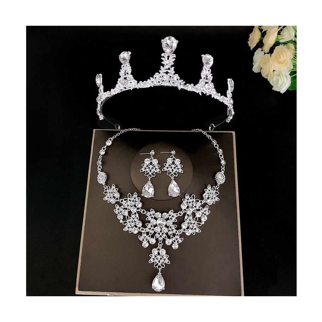 Bridal Tiaras Crown Set with Earring Kit & Necklack Handmade Luxury Crystal Hair Accessories for Party Prom